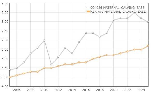 MATERNAL CALVING EASE (MCE): Percent of unassisted births in first-calving daughters.