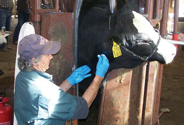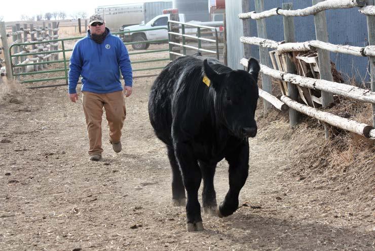 Joe Spanel bringing up a bull for testing