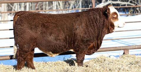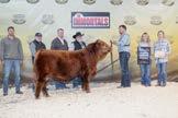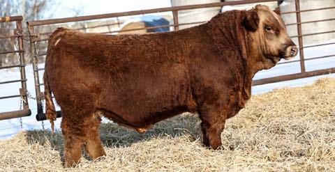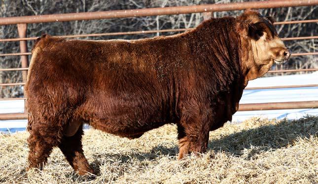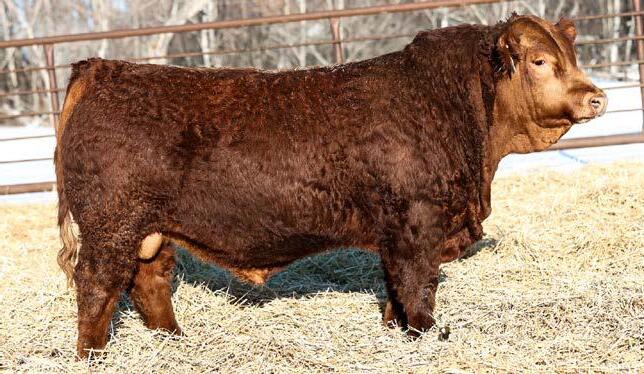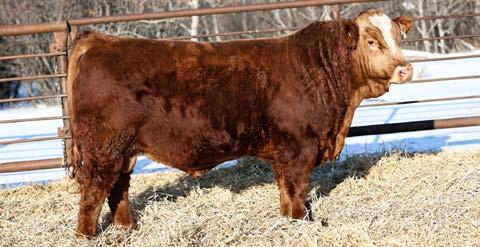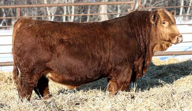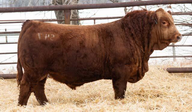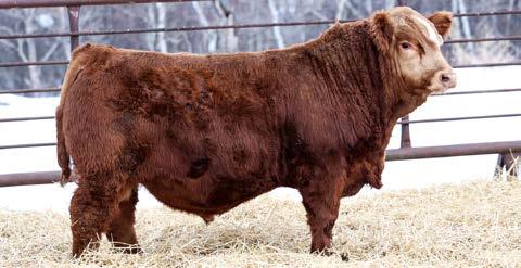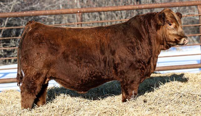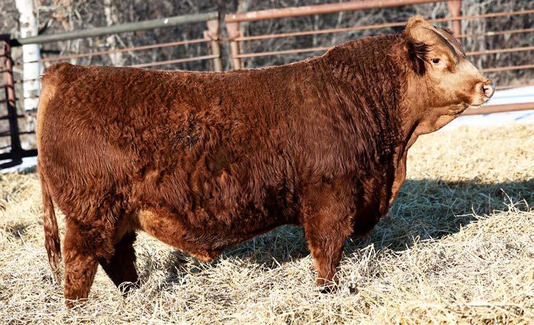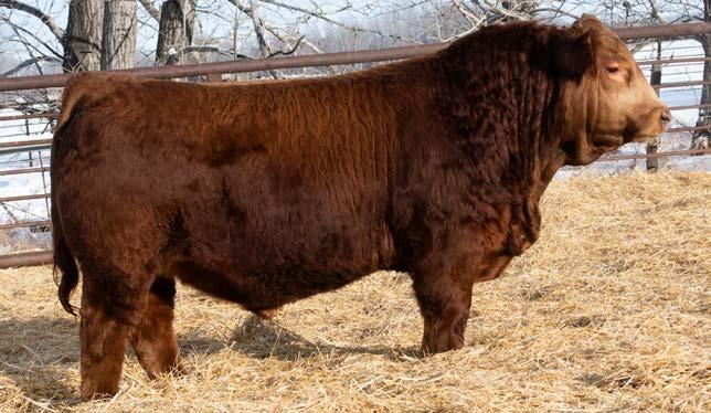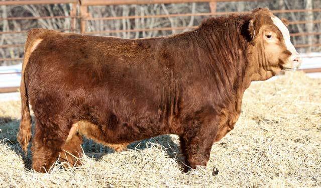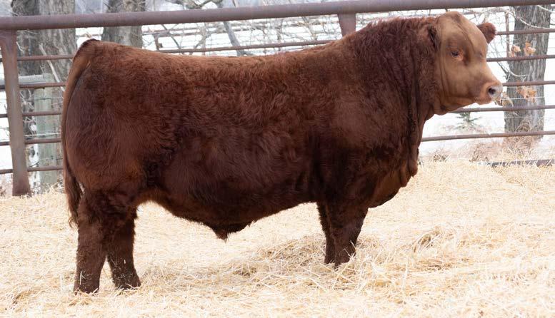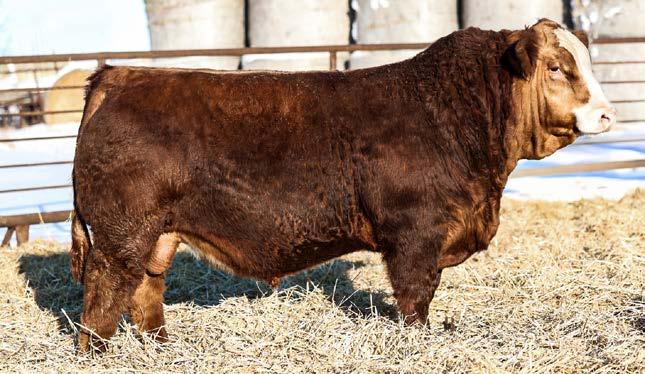 Another really good bull off of the 108L sire that added depth and style to his calves with a calving ease bonus. This guy has an attractive red blaze face, he’s smooth made with ample thickness and length. This is a bull that doesn’t have papers but that doesn’t take away from his quality as an individual. His mother is a really nice young red cow that is sired by Revolt and would stem from the same cow family that has the unregistered Ruger bull in the sale. This guy should calve awesome on young cows or take some birthweight out of some big power cows.