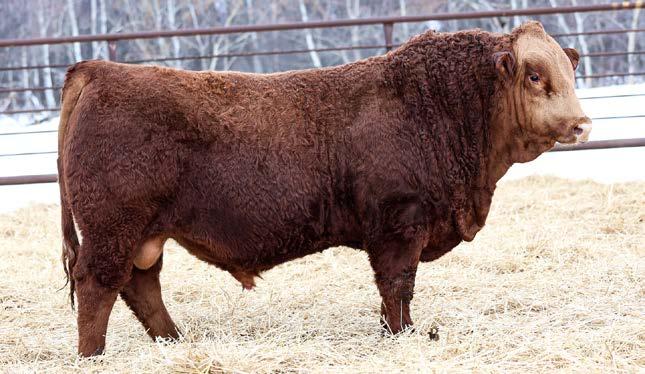 Here is the bull that has had as much buzz and talk as any. He is so complete and attractive with a little extra depth and sogginess to him, dark cherry red and beautiful hair. We campaigned this guy at Immortals in Stettler where he was Champion Simmental bull and Farmfair where he was Reserve Champion Intermediate bull calf. His mother, Rock 130F would be the dam of NUG Dunlop that works for Willow Creek and Balisky’s, NUG Houston who works for Rocky Meadow Ranch and an awesome heifer calf that Windy Knoll purchased from us at Friday Night Lights last year. His top side is an outcross pedigree and I think this guy is a pretty unique breeding piece.