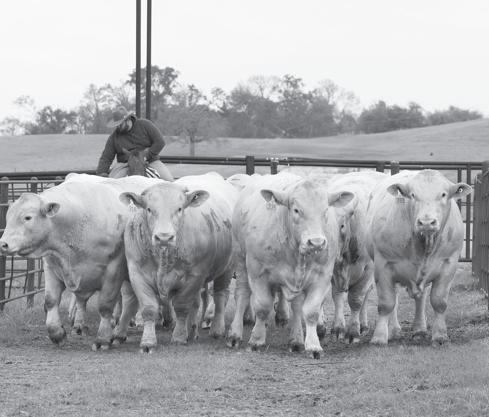 This year, we are thrilled to present an exceptional lineup of highperformance bulls, featuring top-notch quality and a diverse range of types specifically tailored for the Commercial Cattleman. Our inventory has expanded to include 240 BRANGUS bulls, 40 Charolais, and 114 registered females. Currently, we are feeding our bulls at our ranch’s bull development facility, where you’ll find a robust group of yearling bulls that are well-built and capable of breeding cows effectively. We have enhanced our facility to accommodate all bulls produced by us and our genetic partners, preparing for future growth. We believe that the Herd Sire Prospects showcased among this year’s two-year-olds and yearlings represent the most impressive collection available, poised to advance many purebred operations and elevate the breed.