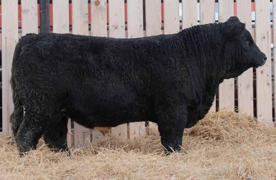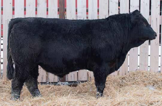 This is a well-balanced bull, characterized by moderate frame, square hips, and an excellent profile. His length and softness are traits likely to help with calving. The dam, BLAZIN JHENE 929J, possesses substantial hip capacity and good feminine attributes. She descends from established cow family known for consistently highquality udders.