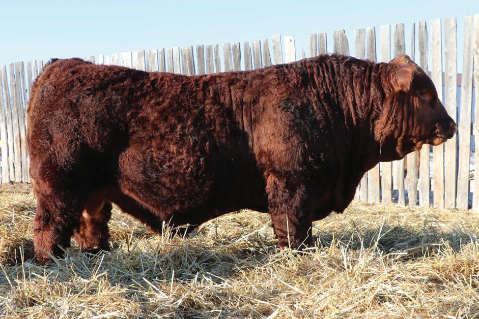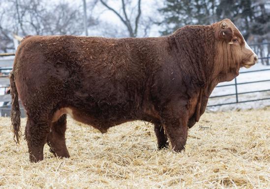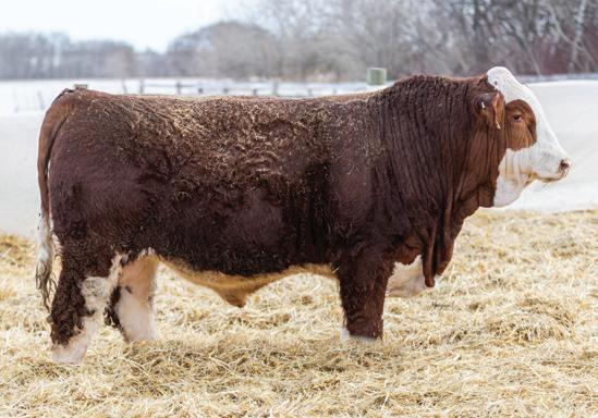 This dark red, Epic son combines eye appeal with performance. He’s long-bodied, deep-ribbed, and stout-made, with the kind of structure built to last. Backed by strong, balanced EPDs, he’s designed to add growth without giving up calving ease or maternal value. His 904-lb weaning weight makes him my heavy weight this year. A great option for cattlemen wanting added pounds, consistency, and dark red color.