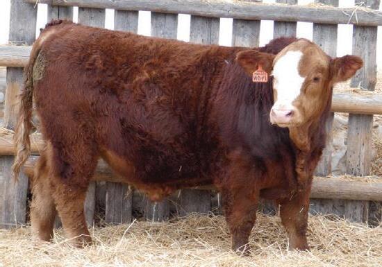 Keet’s Nuclear 33N is the 3rd Fairview Evolution bull out of Keet’s Fatima 20F that we’ve brought to the sale. His full brothers, Keet’s Missile 30M went to Bear Lake Simmental Farms and Keet’s Launch 28L went to Crossroad Farms. Fatima’s production record for us has been outstanding. Her first bull went to Galaxy Simmentals. Her next 2 calves were bred heifers that went to Pheasantdale Cattle Company and Forden Fairview Farm. I keep saying that her next heifer won’t leave the farm, but ever since I said that she’s only had bull calves (including this year). Nuclear is the darkest red bull in our pen and should bring some calving ease from his dam’s side. He’s also homozygous polled.