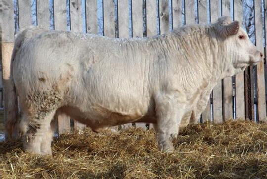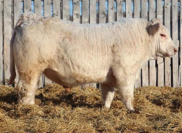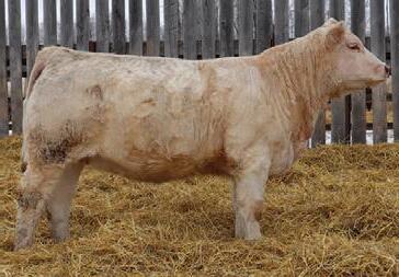 Marksman was the high seller in our 2023 sale to Kay-R Charolais. We always admired his stoutness, hair and eye appeal. His dam was a great uddered and strong footed cow. We are very pleased with his progeny. They are long, hairy and sound.