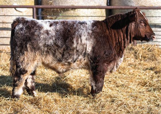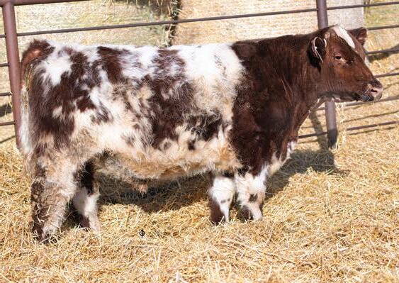 Montgomery has scale crushing performance, big foot, and sound structure while oozing eye appeal. His granddam, Six S April 55A, has been the best producing cow in my herd., 55A’s daughter and sons elevate my program to the next level. TGN Eileen 3E is an outstanding JSF Addicted 82U granddaughter. His sire, Diamond 2 nd Hubback 38H, is one of the most impressive bulls out of a front pasture cow at Diamond Shorthorns. You’d be hardpressed to find a better set of EPDs this season with 11 out of 12 above-average traits. Montgomery is the ultimate breeder bull with a unique pedigree and an outcross to many programs.