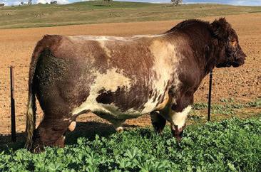 100L is the only Simmental Bull on offer but he is a very good representation of the Simmental breed. He was used on commercial heifers and cows last year and bred extremely well. His mother has been a top cow and is in the herd now being utilized in our Shorthon Plus program. If you have a few extra heifers or young cows to breed than you should have a good look at 100L on sale day.