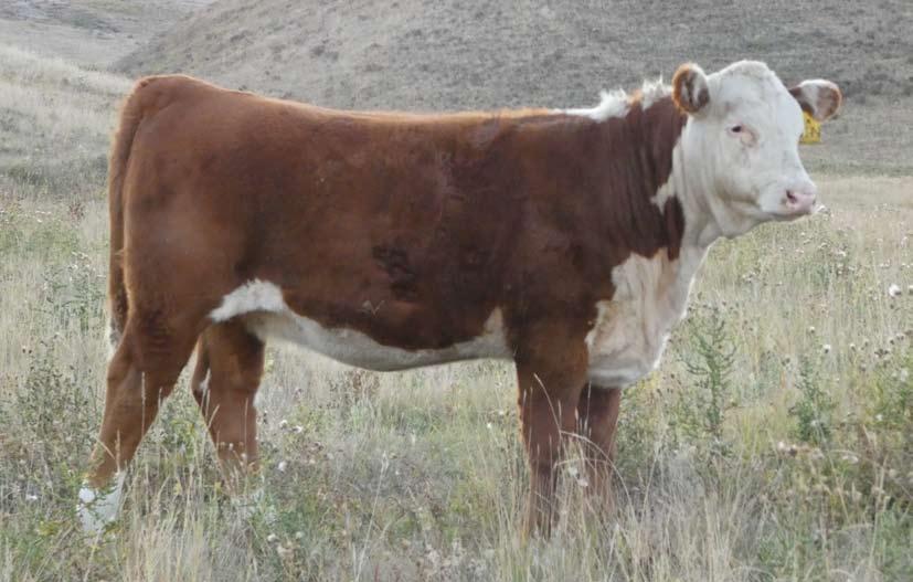 Horned Another great pedigreed heifer that is tough to sell. Big red eyed heifer perfectly marked out of a great cow family. She’s a granddaughter of our great 171Z donor cow who is the dam of our feature 2 year old lot25, 160l. This will be one of the buys of the sale. Great EPds with weaning top 20% and yearling top 7%. Good carcass with REA top 27%.