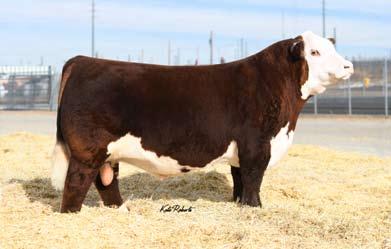 Polled This is another great 777H son out of one of dana’s top hereford cows. He’s big, long with great testicles and perfect feet. We used him this summer on a few of dana’s cows. He’s going to be a big bull. His dam has a great udder and produces well. Her heifer this year is a great one we’re keeping. His growth numbers are impressive, weaning 1% and Yearling 4% and RFi at 25%. Carcass Wt at 12% and REA 22%. Remember he was used this summer and is still going to be one of our heaviest 2 year olds sale day.