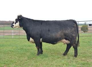 If you are looking for an extremely high level Simmental show heifer, here she is!Tons of extension and look coupled with plenty more than adequate bone dimension. Two very powerful cow families at play here with the Joy cow on the top and the Perfection cow family on the bottom.This heifer’s dam is a maternal sibling to the popular JF Back in Black.