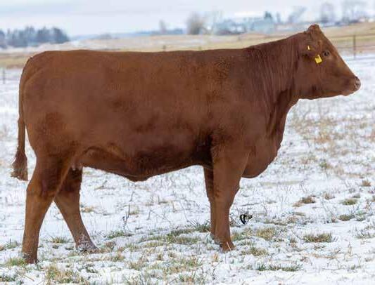 This is my favorite red Horse Power daughter and I’m sure you’ll appreciate her as much as I do. She is a complete package with loads of volume, a brood cow look, dark solid feet, nice EPD’s and a super developing udder. Cow families play a big role in the females we keep or sell. 29M traces back to a big dimensioned Judd cow Roger brought up years ago. We have a few females here from this cow. Also, the females in the 722Z pedigree add to her overall profile. This heifer is the real deal.