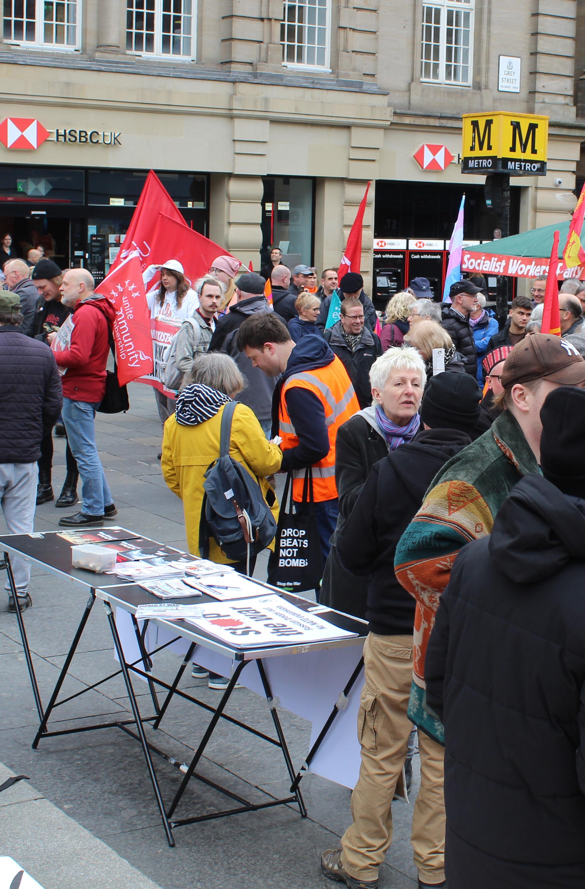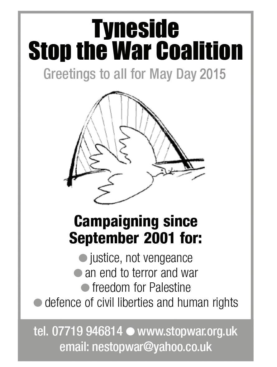 Our invited speakers this year will deal with key issues of the day –Liz Blackshaw and Sarah Woolley giving the trade union perspective, Ben Sellers on the fight against austerity and Martin Dent on the Unite Community campaign against fuel poverty, together with Mick Bowman talking about Palestine and Mohaned Elnour reporting on Sudan. We’ll have local speakers too, and music throughout the event, including the social at the Tyneside Irish Centre, where Palestinian food will be on offer, for a donation.