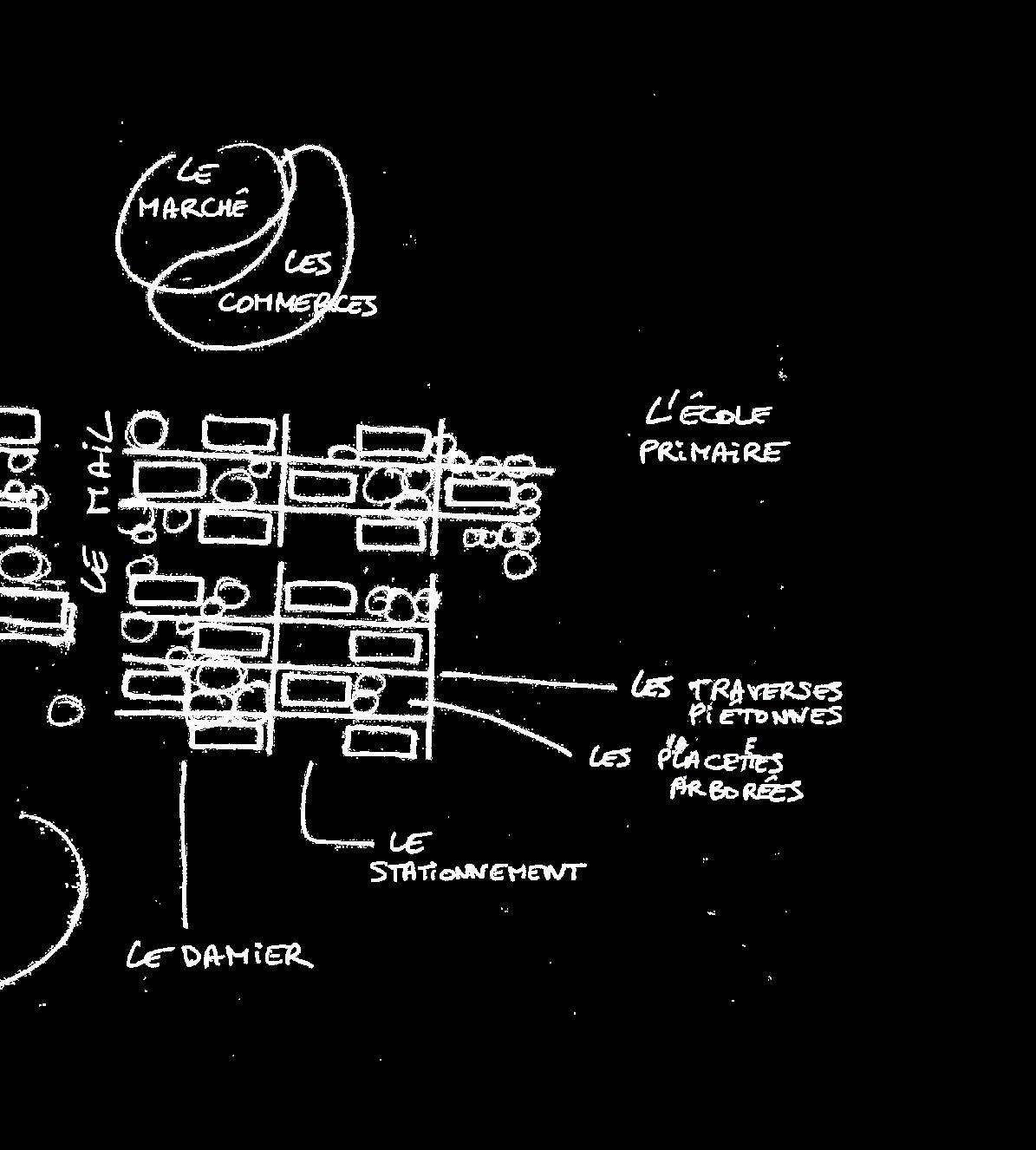 Un ensemble de maisons mitoyennes, de petits immeubles collectifs et de placettes s’organise dans la pente. Par le traitement soigné du cheminement et le dessin des sols, ainsi que le choix d’un stationnement souterrain, l’échelle piétonne et le caractère villageois constituent l’essence du projet.