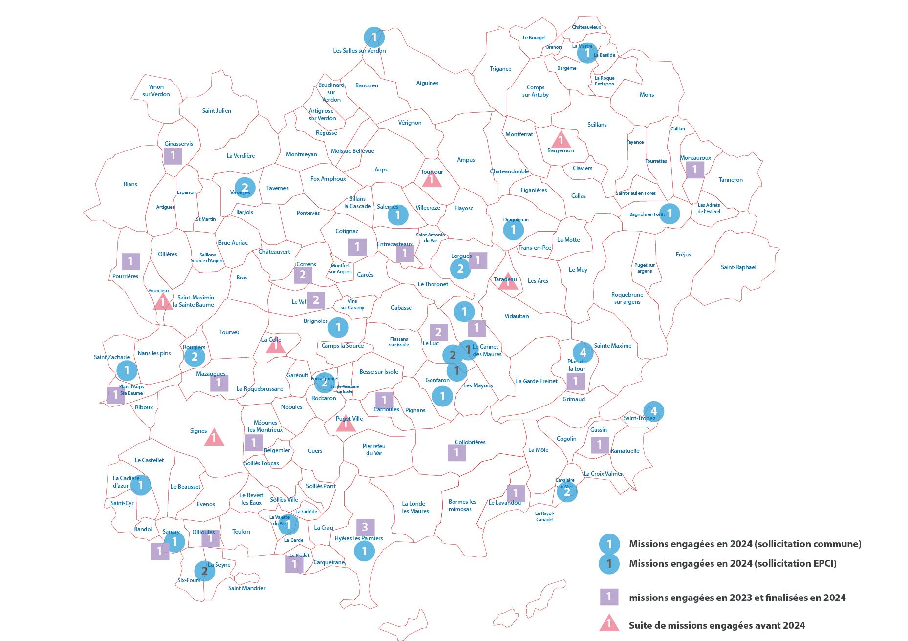 CARTOGRAPHIE DU RAYONNEMENT DU CAUE VAR EN 2024