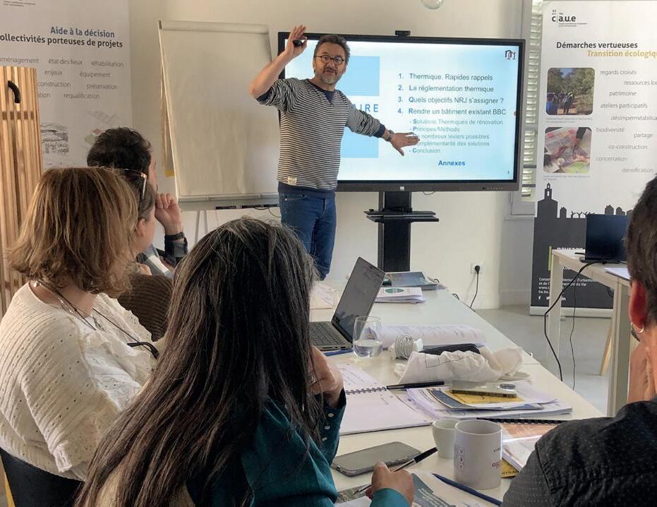 L’accompagnement proposé par le CAUE Var se compose de profils différents, indissociables et complémentaires, et ils développent ensemble des méthodes et des process intégrant les Varois et favorisant la montée en compétence de tous. Notre engagement comme acteur de la formation vient confirmer la dimension professionnelle de la transmission.