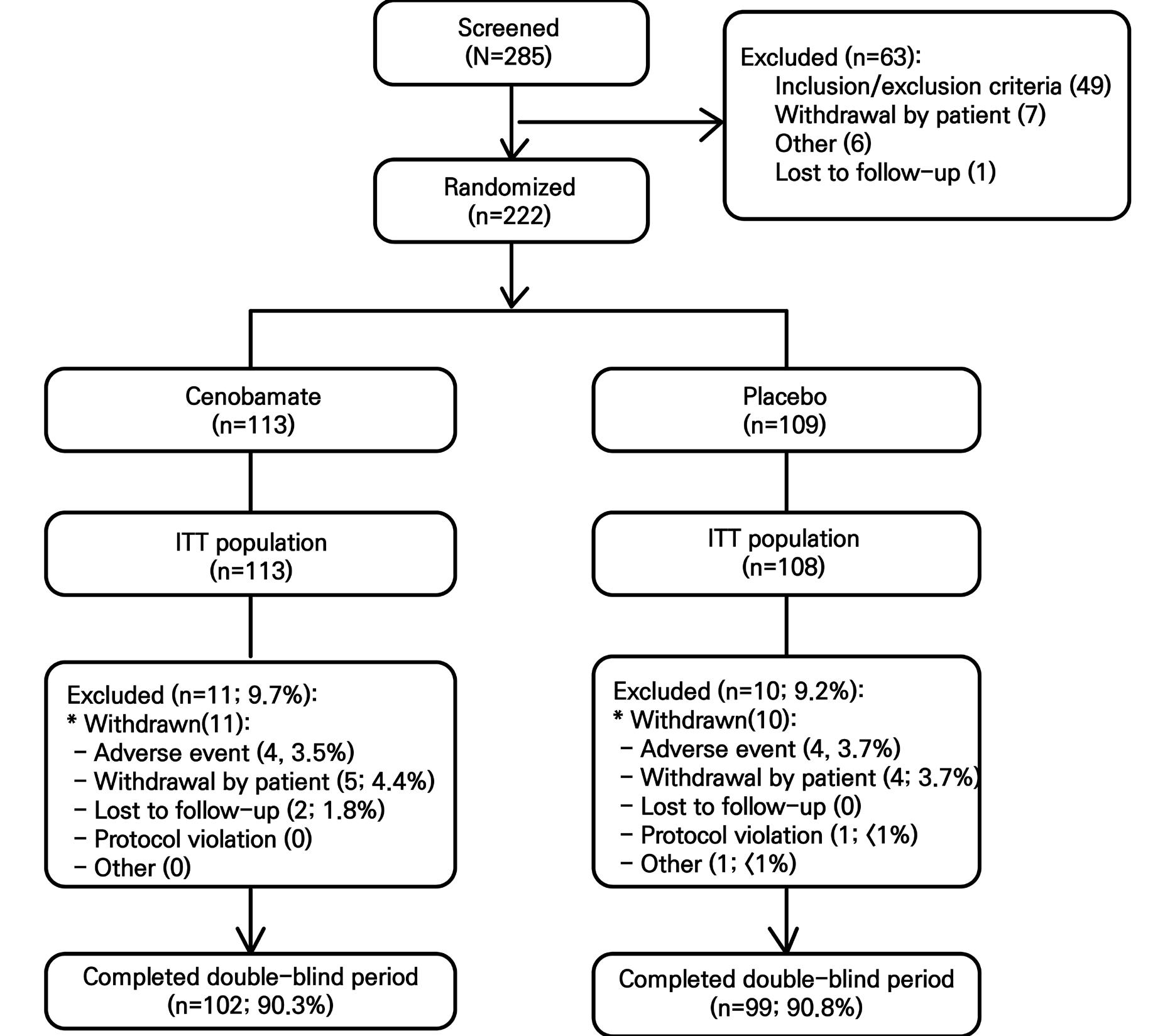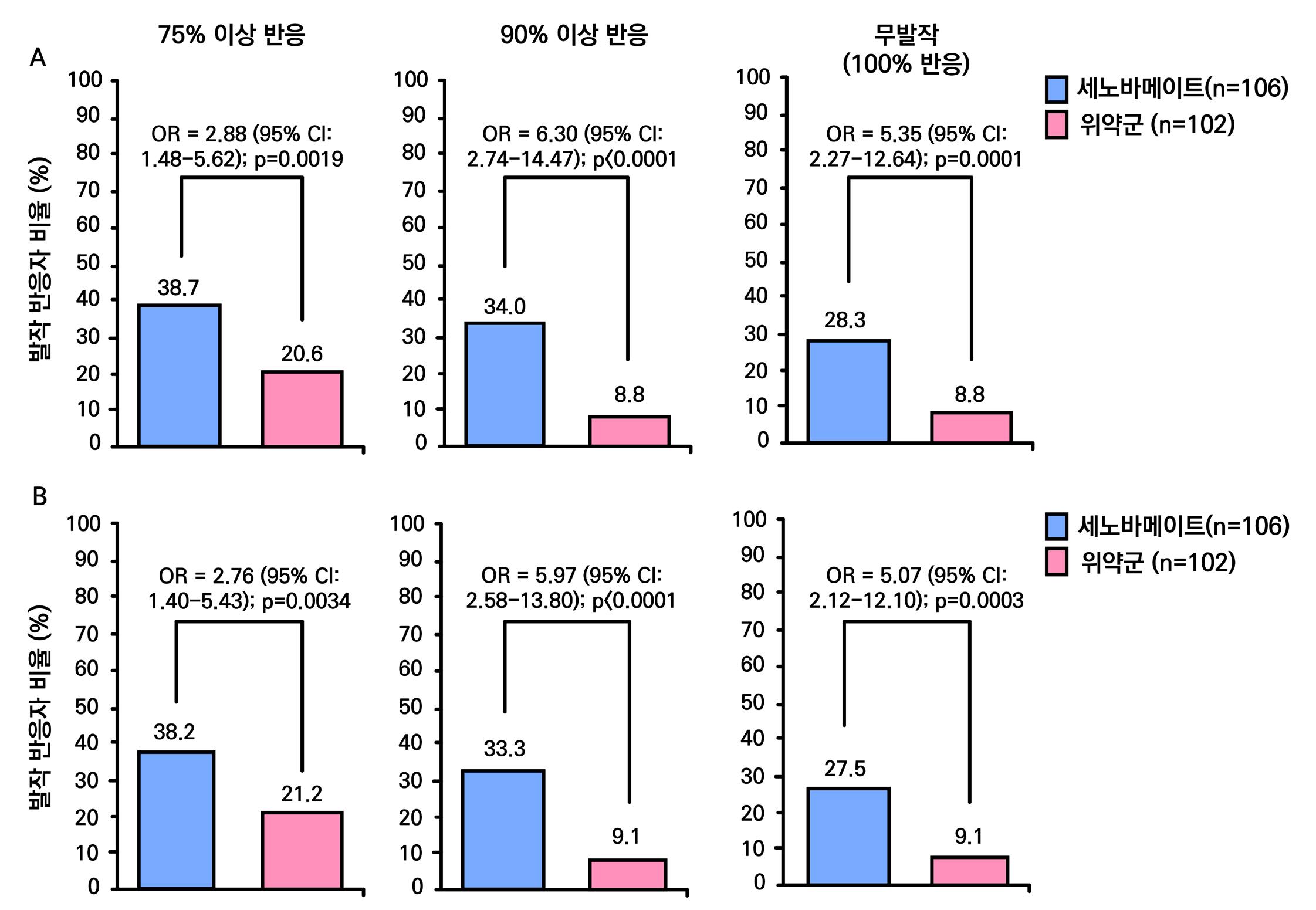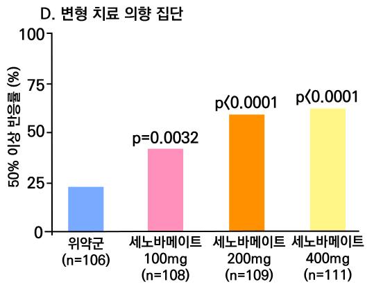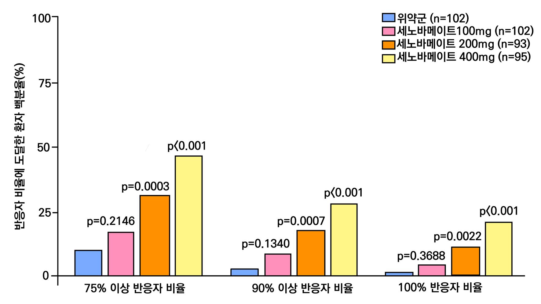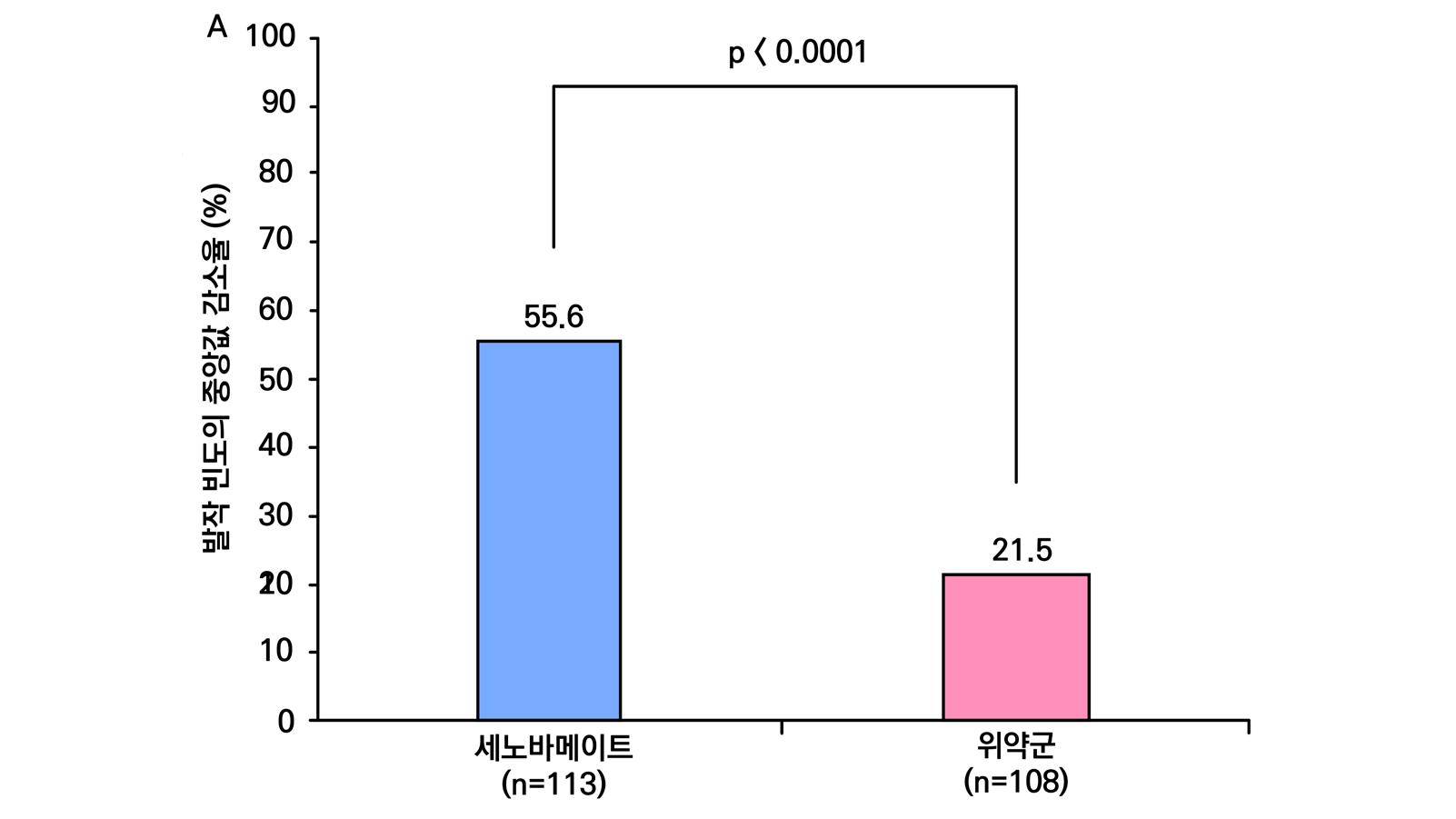 세노바메이트는 나트륨 채널 억제와 GABA_A 수용체 양성 조절 작용을 통해 부분 발작 치료 제로 승인된 약물이다. 현재 진행 중인 임상시험은 성인 및 소아 환자를 대상으로 한 용량-반
