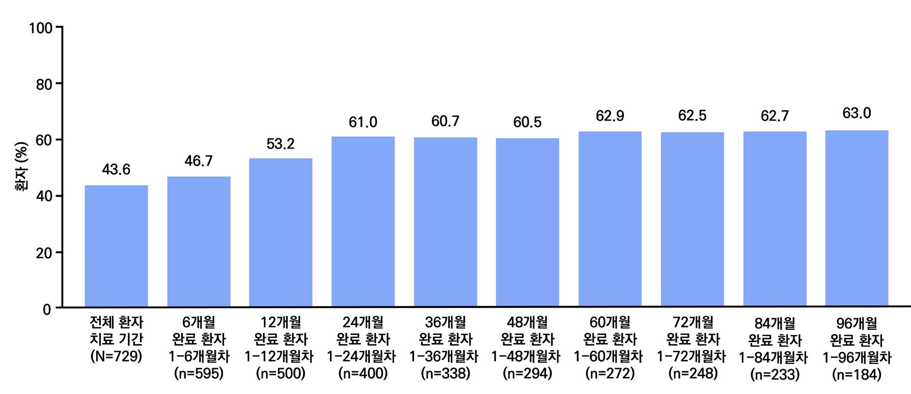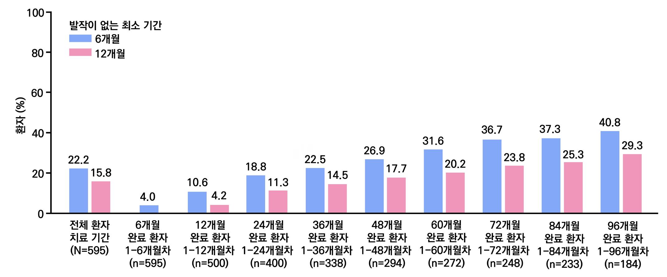 작의 재발률보다 높은 경우(일반적으로 60% 이상).