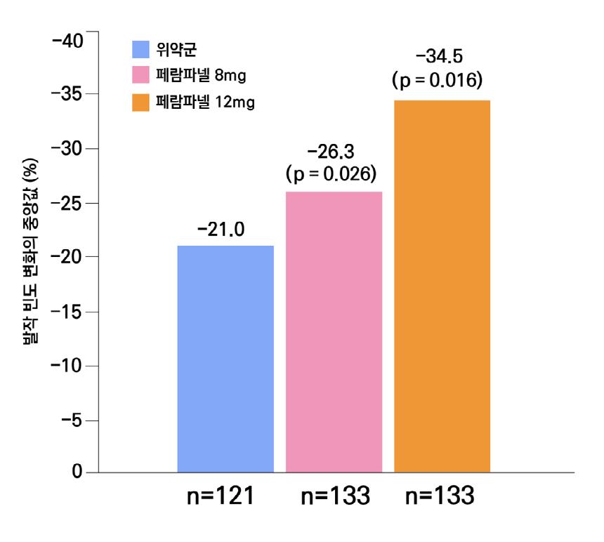 페람파넬은 정제와 함께 경구 현탁액 제형이 FDA 승인을 받았으며, 소아 환자를 대상으로 한