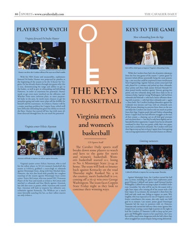 The Cavalier Daily sports staff breaks down some players to watch and keys to the game for men’s and women’s basketball. Women’s basketball started 0-1, losing to No. 6 Mississippi State 72-44 at home. The team will look to bounce back against Kentucky on the road Thursday night. Ranked No. 4 in the country, men’s basketball is 2-0, coming off a 76-57 win over George Washington. The team faces Coppin State Friday night as they look to continue their winning ways.