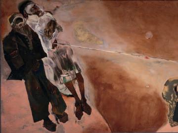 16. GIANNETTO FIESCHI, Il pericolo - Coppia che cammina n 1, olio su masonite, 1978.