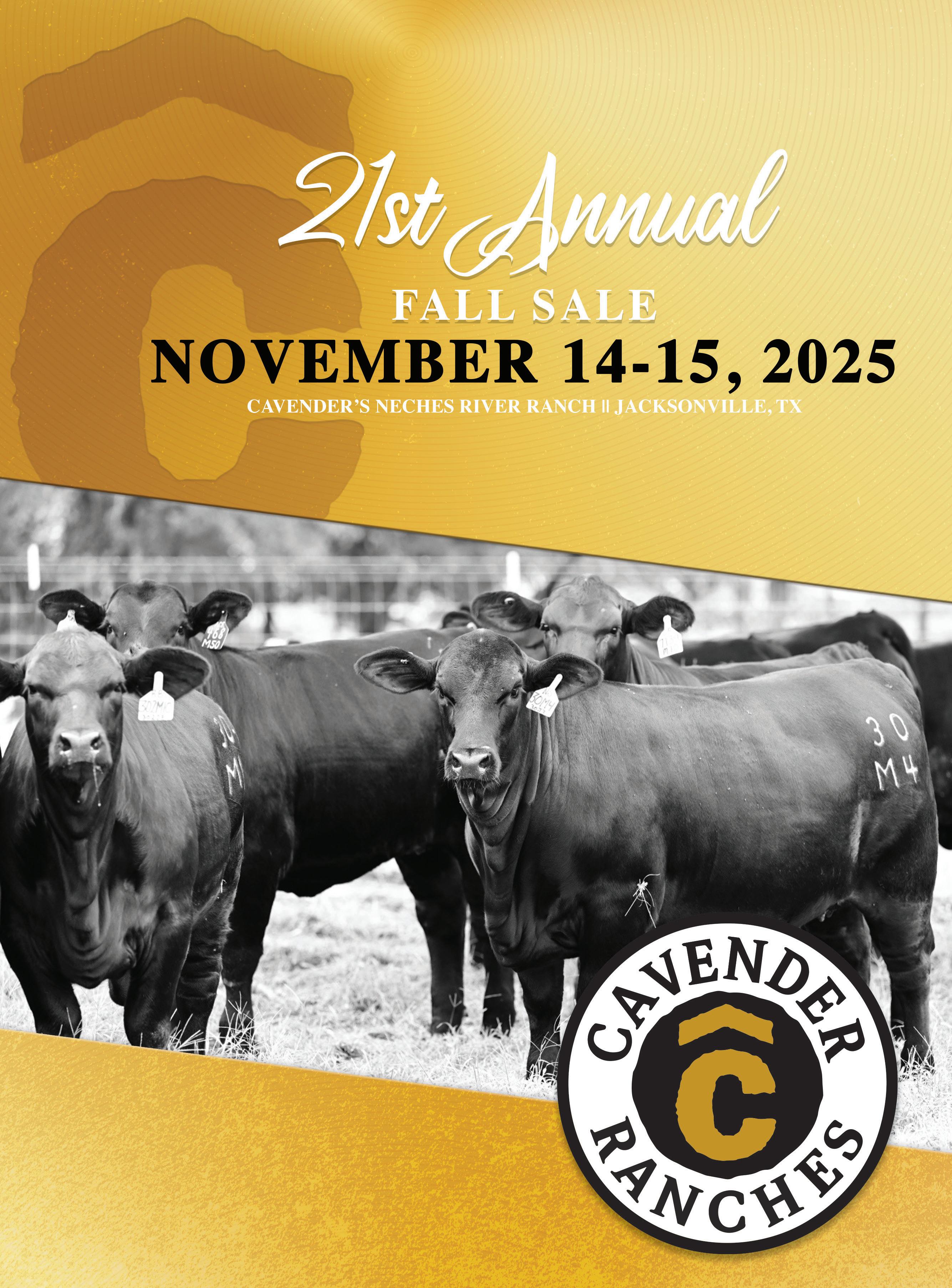 We look forward to seeing you November 14 and 15 at Cavenders Neches River Ranch. We will sell over 1000 head of seedstock in a power packed event and we hope you can be a part.