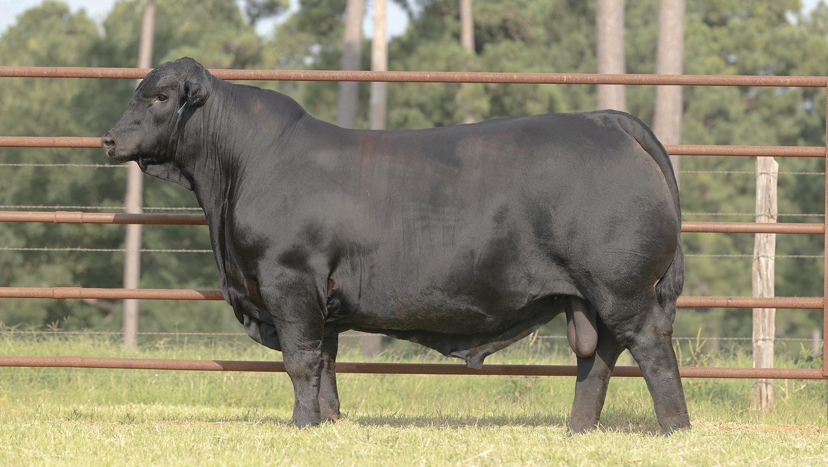 He adds bone and power and stature. Phenotypically pleasing when bred to more moderate cows. Has some great sons that will sell as yearlings.