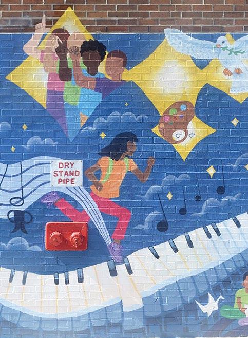 22-year-old Max is a returning Youth Apprentice with Creative Art Works, who had a role in the creation of the “Monte De Flores” mural in 2022 and the “Harlem Heat” mural in 2023. This year, he finds himself back to meet new faces and like-minded individuals to share interests with, as he continues to push the boundaries of shedding light on sensitive subjects through his art so others who are struggling can find sanctuary in their passion.