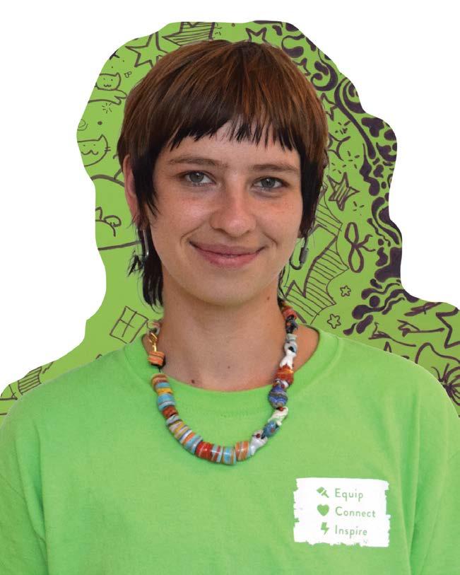 Dani Tyler-Zimmerman is a junior at Purchase College for a Bachelor’s degree in music, and returning for their second summer of working for Creative Art Works. Hailing from Brooklyn, some of their passions include making music, writing, and drawing. If all goes well, they hope to release a 20+ song album for their culminating senior project around May of 2027. During their time spent working for CAW, they can say that the best part about the job is how well balanced the work-fun ratio is. Even though the group is undertaking a professional endeavour, the working atmosphere is relaxed enough so that everything isn’t too stressed.