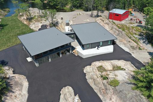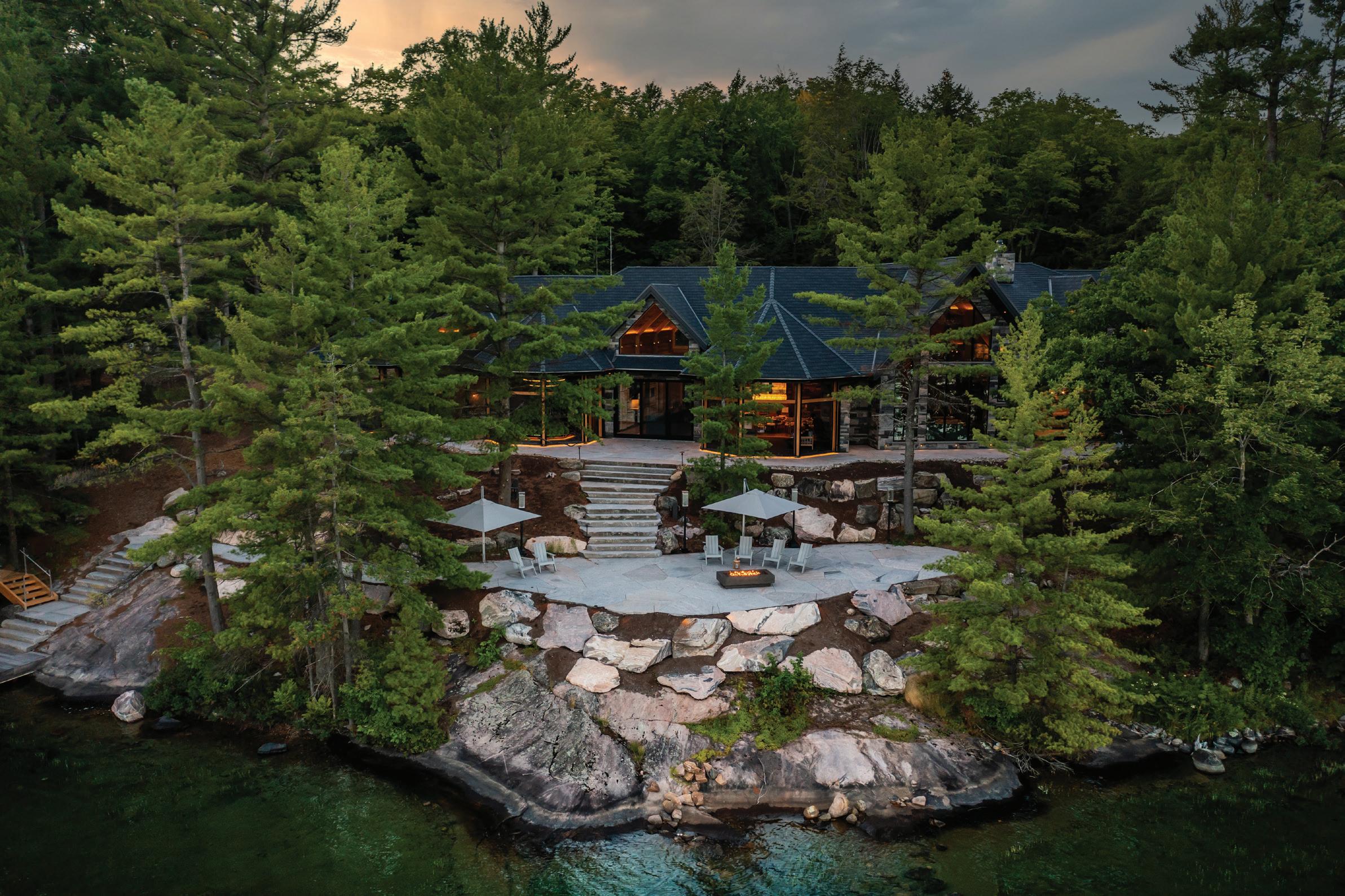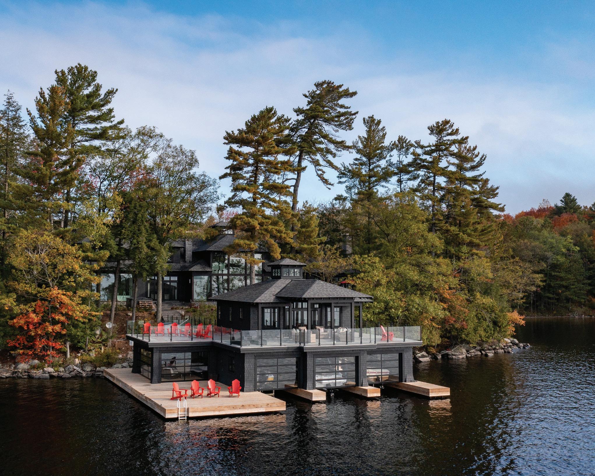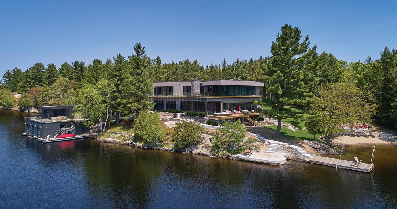 Despite the challenges presented by the rocky landscape, the result is a sleek architectural marvel highlighting the beauty of Muskoka's lakeshore and providing executive-level space for relaxation, dining, and entertaining.