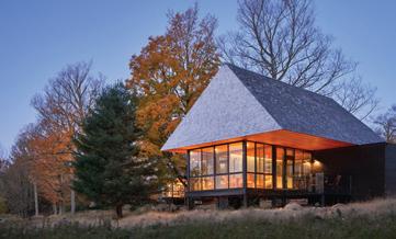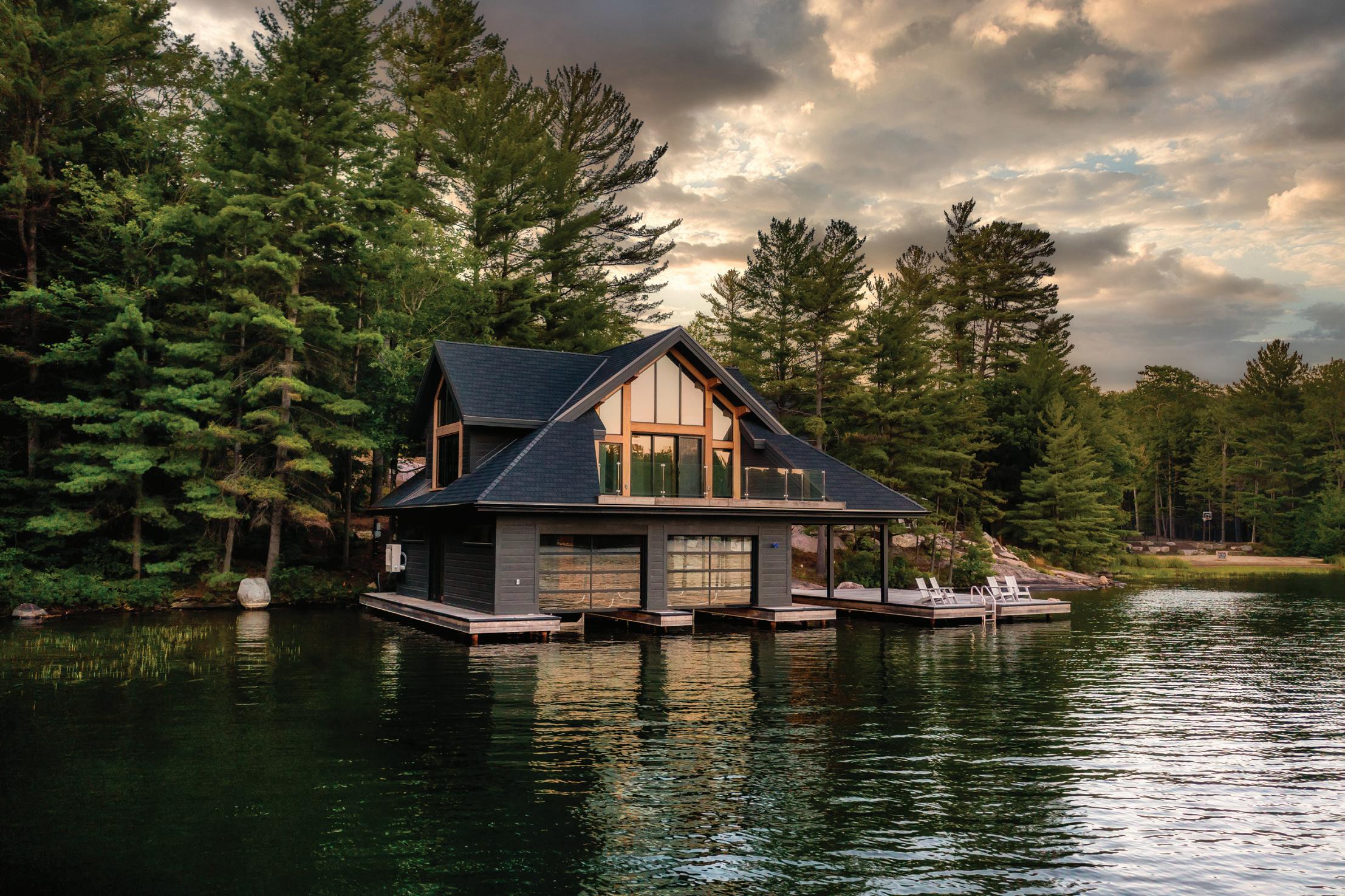 Muskoka Boathouse Retreat: Gilbert + Burke designed and built a unique, eco-friendly boathouse off of Lake Muskoka, which complements the natural environment and maximizes space for entertainment. The structure