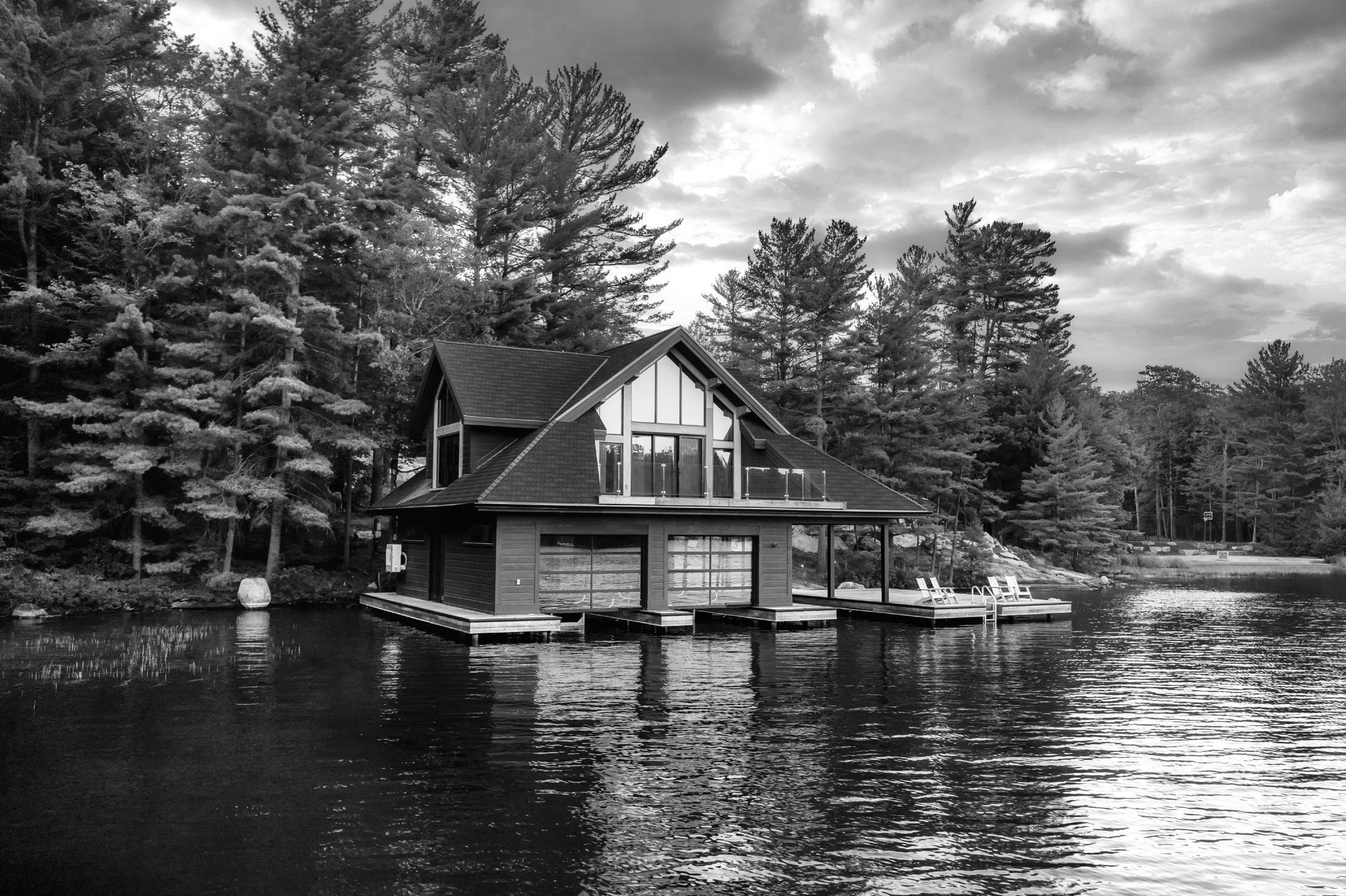 Haliburton Lake House Rebuild: Gilbert + Burke was tasked with building a lakeside family cottage on a tiny lot with a rich family history. The project aimed to create a spacious retreat that could accommodate multiple families and aging parents while also