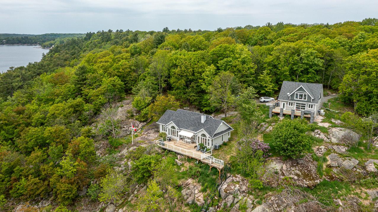 Adding to the allure of this remarkable property is a separately deeded waterfront property on nearby Kahshe Lake. This additional parcel includes a charming fourbedroom cottage with extremely private southern views. Just a short walk across a private road, this extra space expands your recreational options, allowing you to enjoy the larger lake whenever you desire. This added convenience means you can visit friends, cruise the bigger lake, or simply enjoy the change of scenery without sacrificing your privacy.