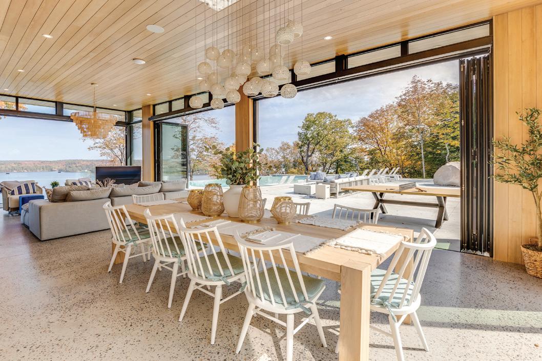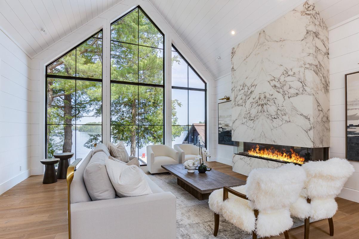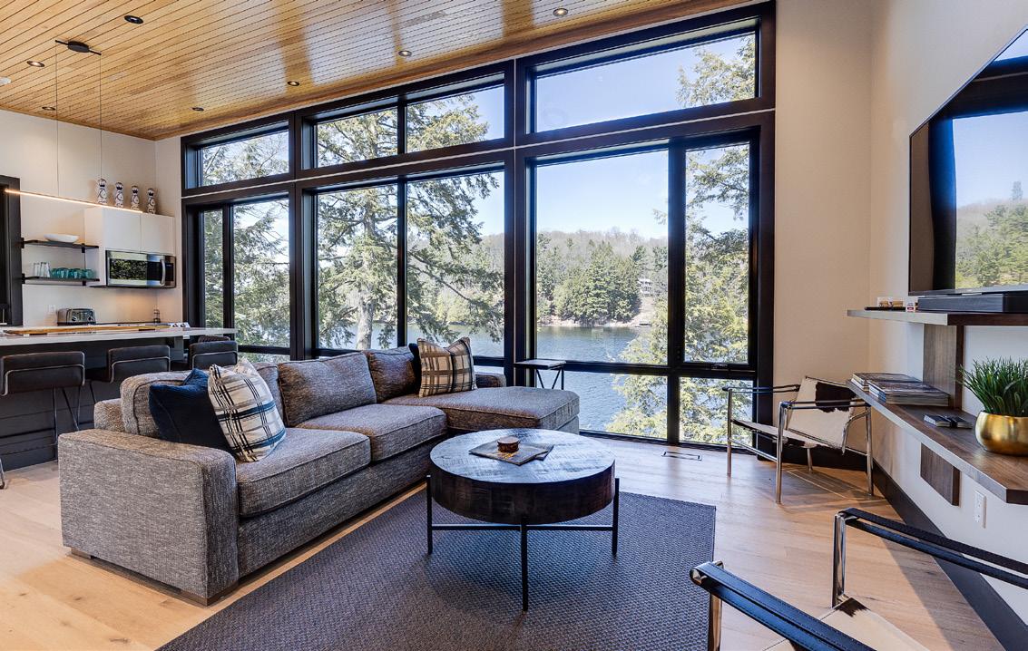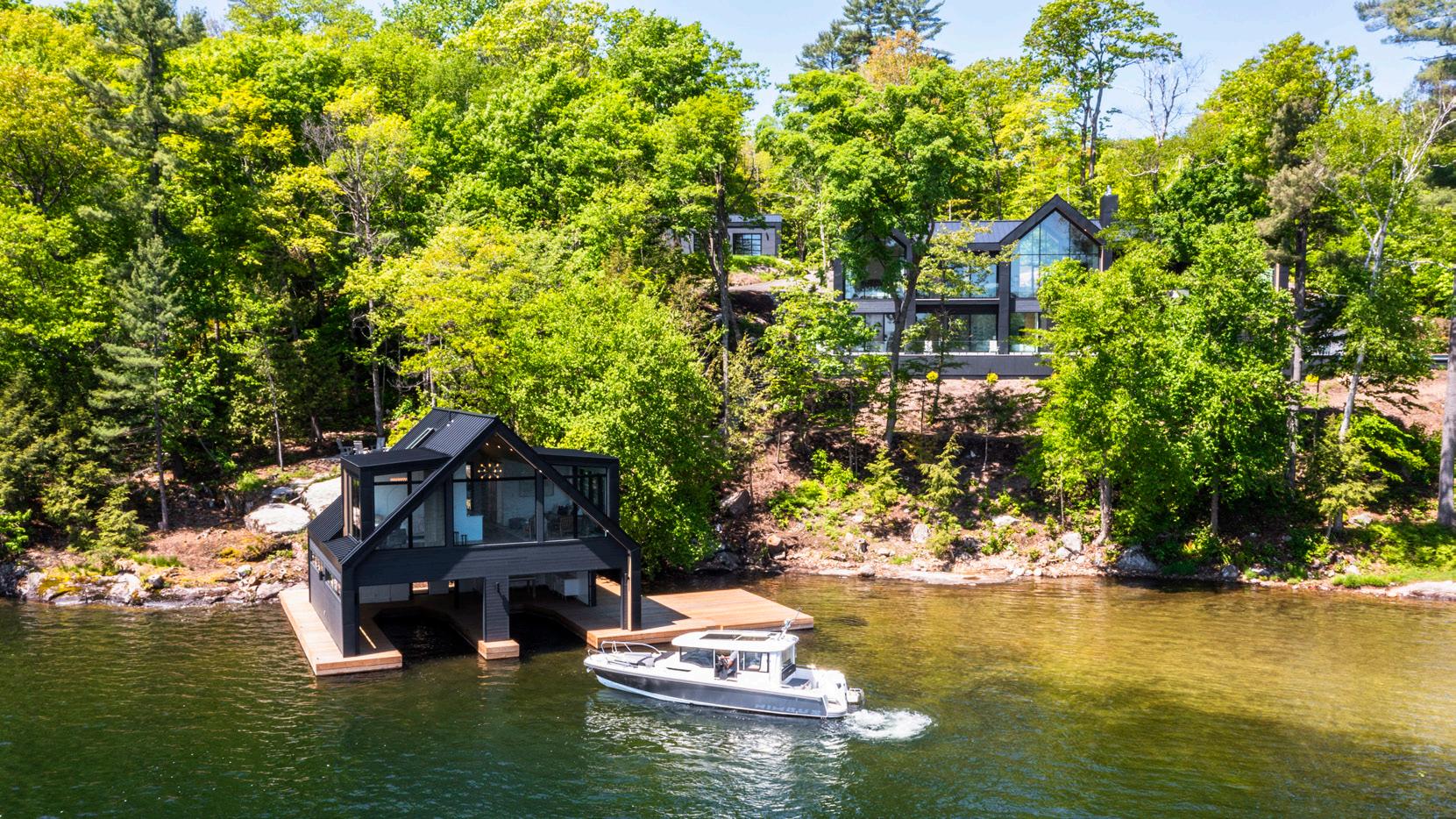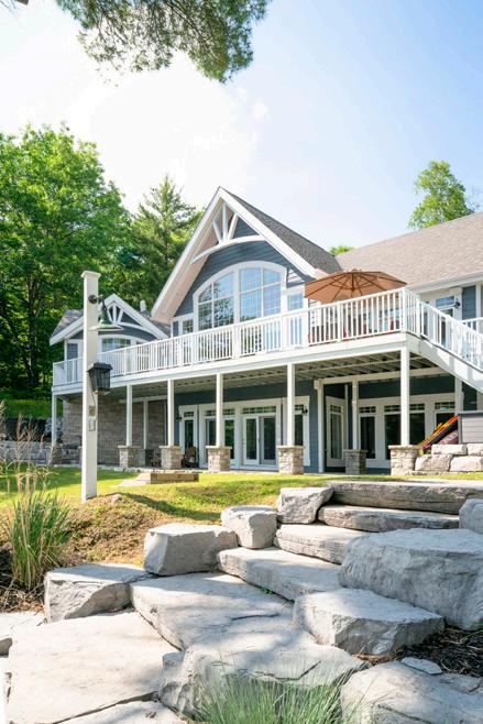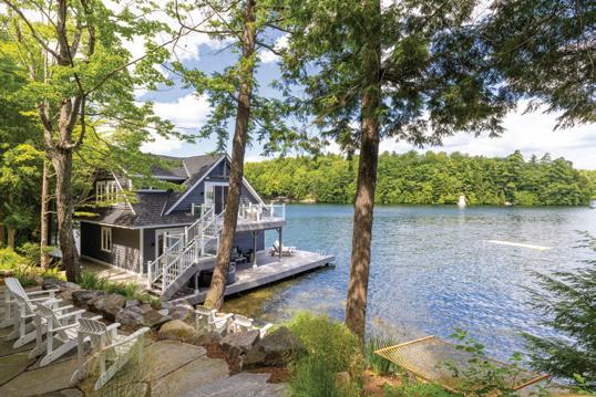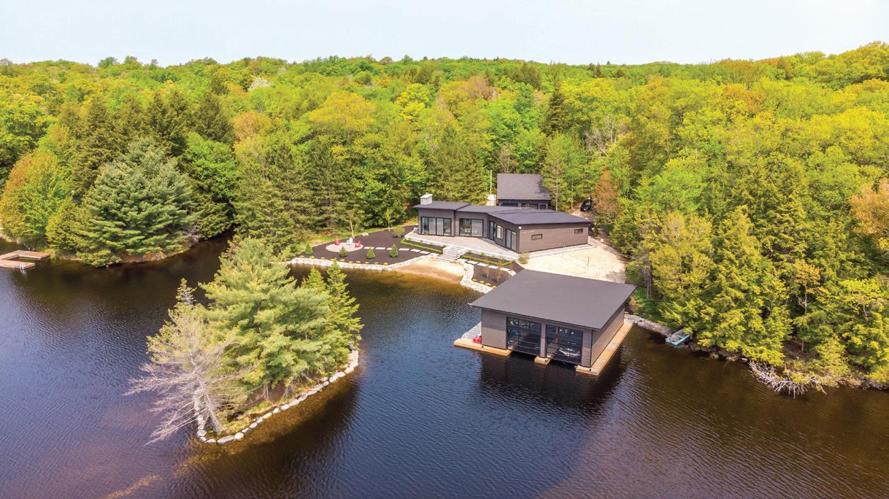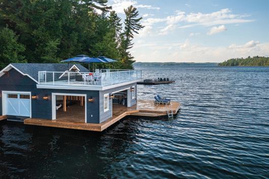 Our cover story is a perfect example of the old real estate aphorism, “The three most desirable assets of real estate are location, location and location.” Just minutes from Port Carling by boat or car, this brand-new, contemporary waterside beauty combines the best of modern cottage living with state-of-the-art amenities, 5,000 feet of living space, a location just 30 feet from the water’s edge – a rare find in a new cottage! – and your very own unforgettable, heartstopping Lake Rosseau view.