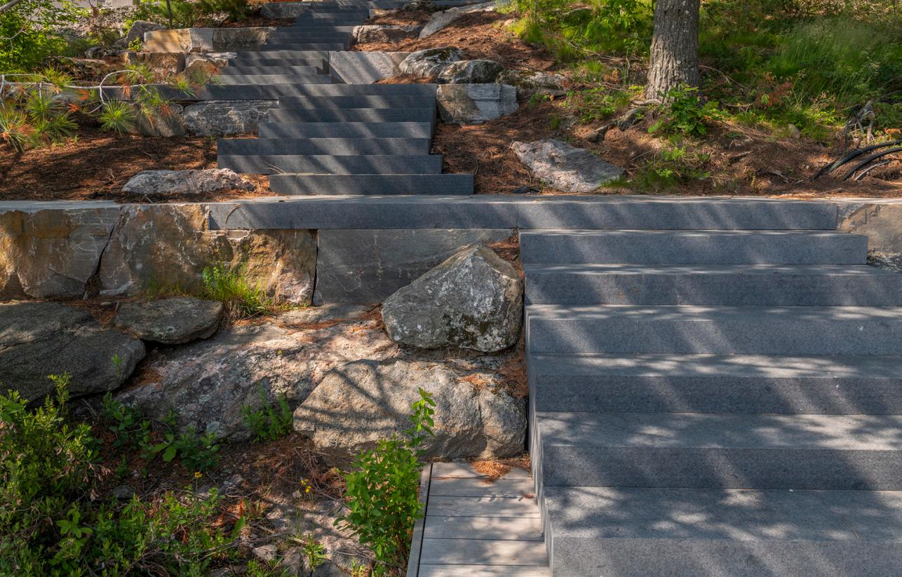 The decking is scribed to existing bedrock outcrops to preserve the site’s inherent beauty.