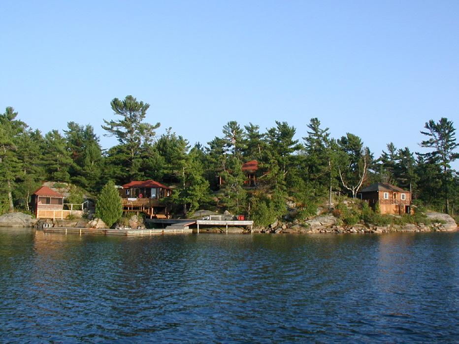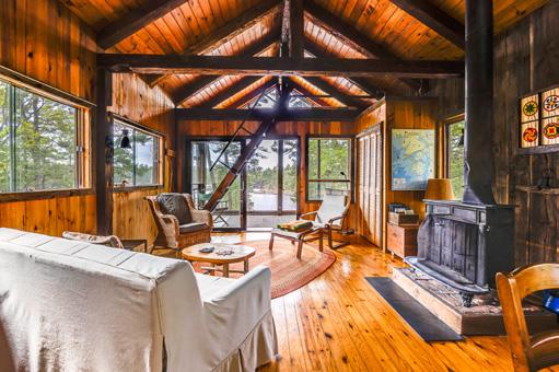 While working on island projects presents unique challenges and opportunities in terms of site access, this main cottage was also located to preserve privacy from boats passing by.
