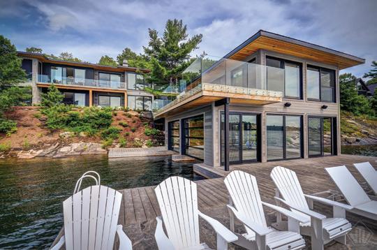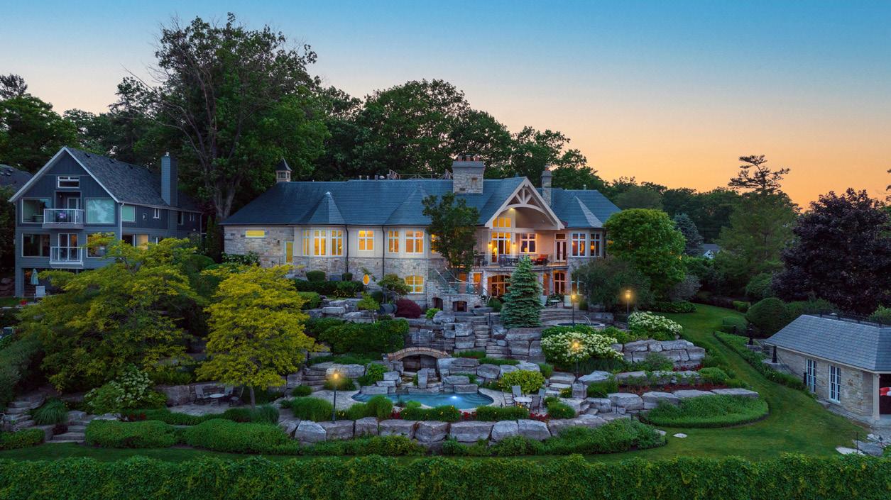 This elegant lakeside home makes every day feel like a vacation in Muskoka or the Hamptons. And the beautiful view actually gets better after sunset.