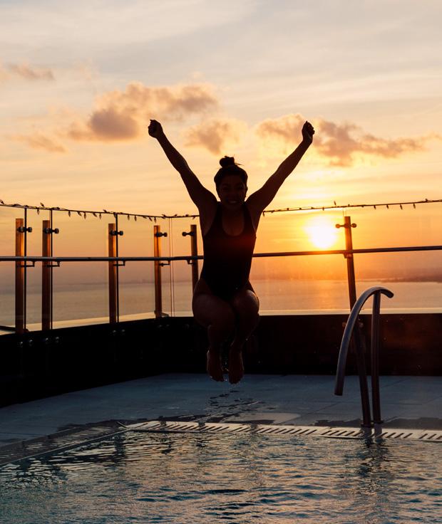 where the view seems to go on for miles. There’s a built-in rooftop driving range for practicing your golf swing, but you may prefer to take a seat and just enjoy life for a little while.