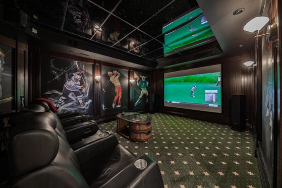 a movie, or work out in the gym. Or you might opt to simply relax in the family room, with its granite fireplace, leathered upholstery and romantic coffered ceiling.