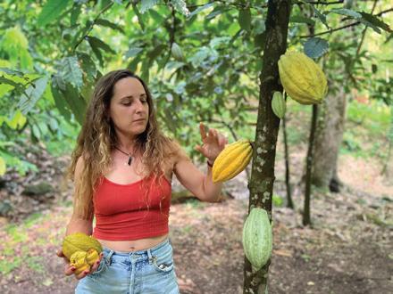 Then it was on to Habitation Céron for a stroll through the tropical forest to see a 300-year-old zamana (rain) tree plus cacao trees whose edible seeds become chocolate in the hands of Julie Marraud des Grottes.
