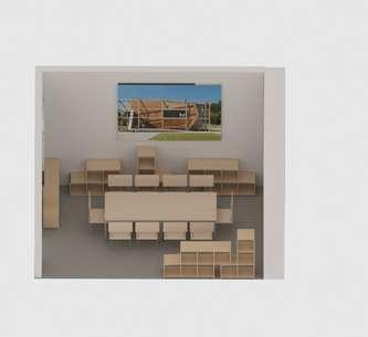 Given as a task to redecorate the Heri & Salli conference room, plywood cupboard modules were introduced. Consisting of a 330 x 330 mm per cube,aslopedplywoodboardatthefarthesthorizontalsideofthemodules allow them to be joined together, while being mobile on wheels. At only four degree of a sloping angle, this spot can be used as additional seats or as space for publications. The discussion table will also be replaced by a singularplywoodone,restingonasteelstructure,withoutanywheels.