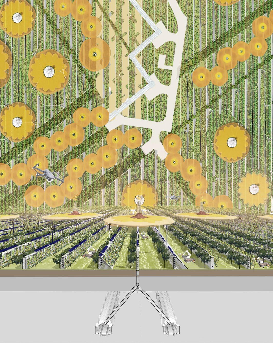 Die Fassade benutzt recycelte ETFE-Kapseln. In diesen werden überschüssige und verdorbene Orangen gelegt, um durch ihre Citronensäure genug Strom zu erzeugen (Tropicana Beispiel links), um das „Wantsum Citrus“-Billboard auf dem Gebäude zu beleuchten. Sobald die Orangen vollständig verbraucht sind, werden sie getrocknet und ihr Zellstoff für den Papierherstellungsprozess verwendet.