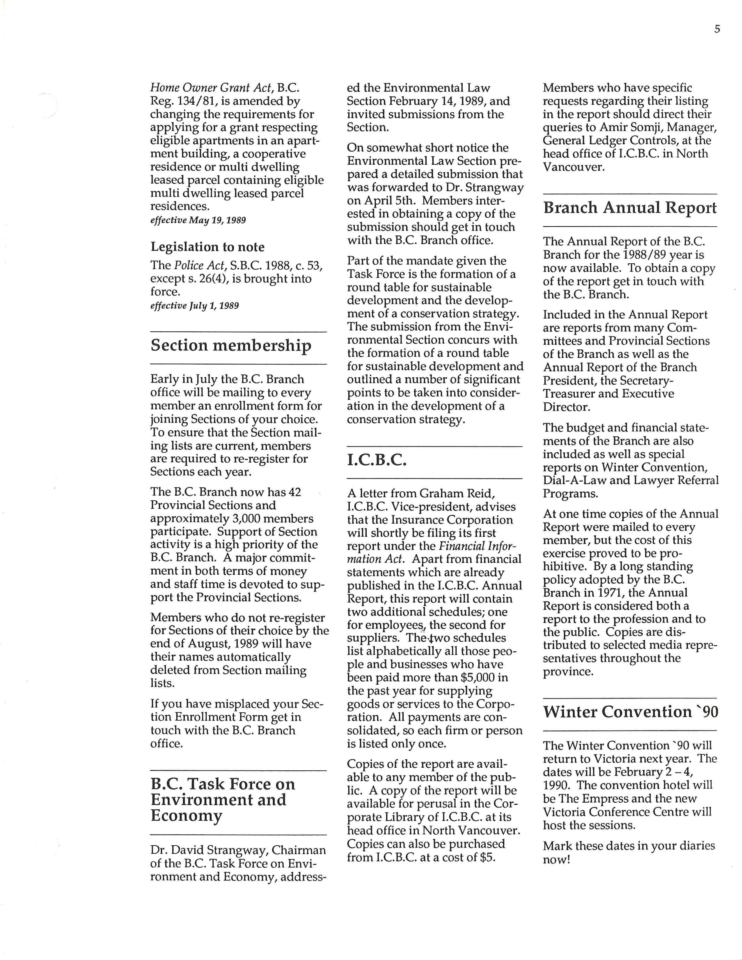 The Annual Report of the B.C. Branch for the 1988/89 year is now available. To obtain a copy of the report get in touch with the B.C. Branch.