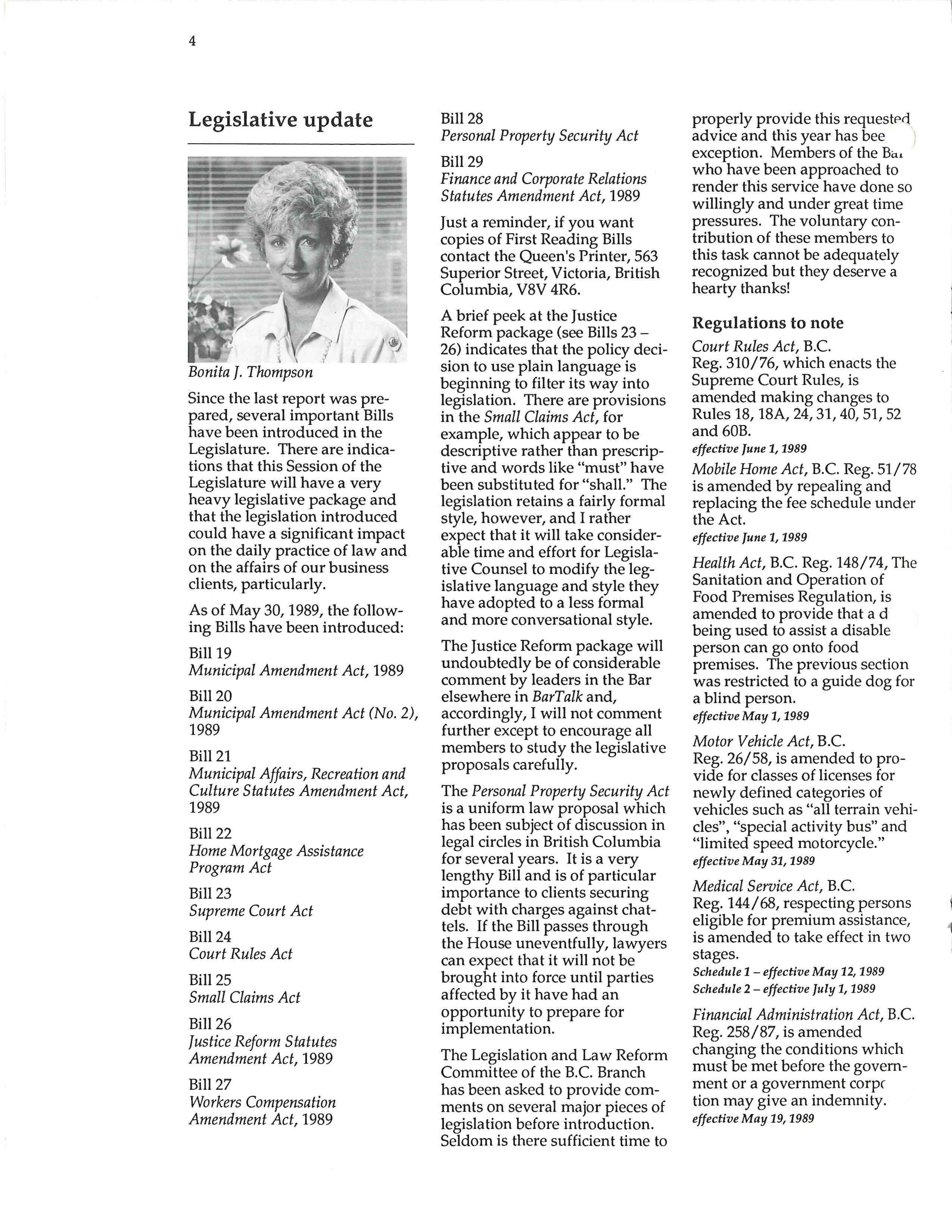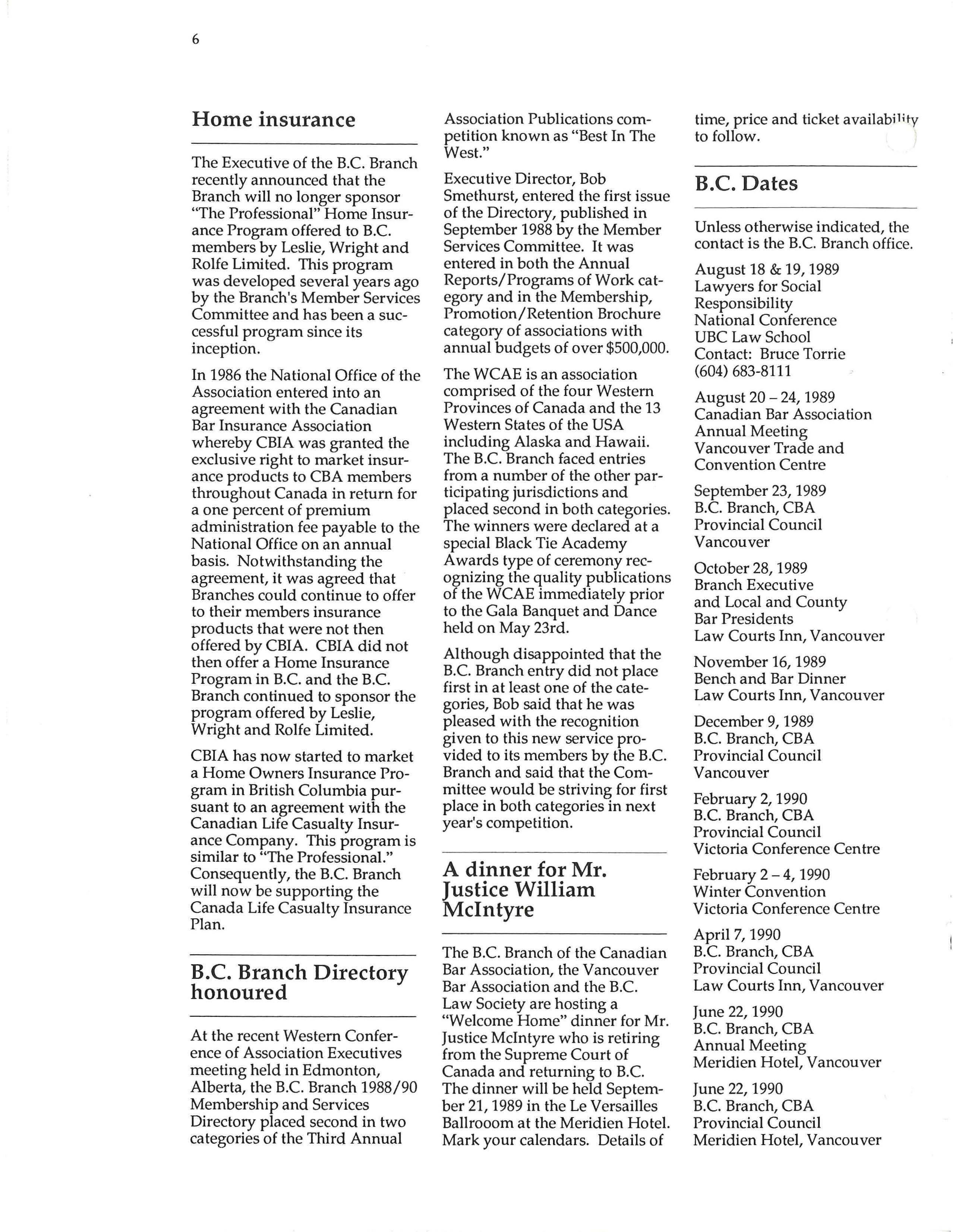 NEWSLETTER OF THE CANADIAN BAR ASSOCIATION, B.C. BRANCH