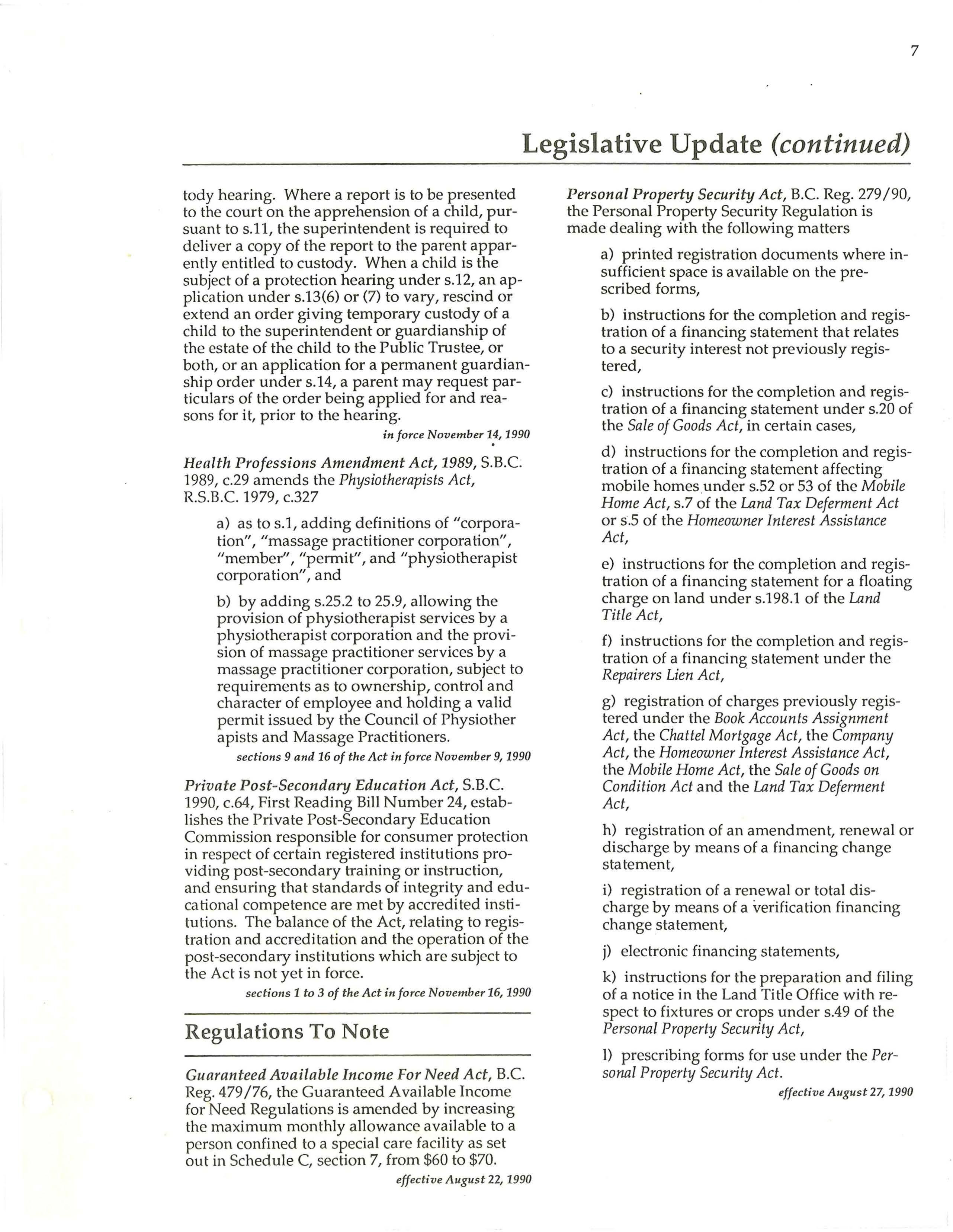 Miscellaneous Statutes Amendment Act, 1990, S.B.C. 1990, c.S7, First Reading Bill No. 46, amends the
