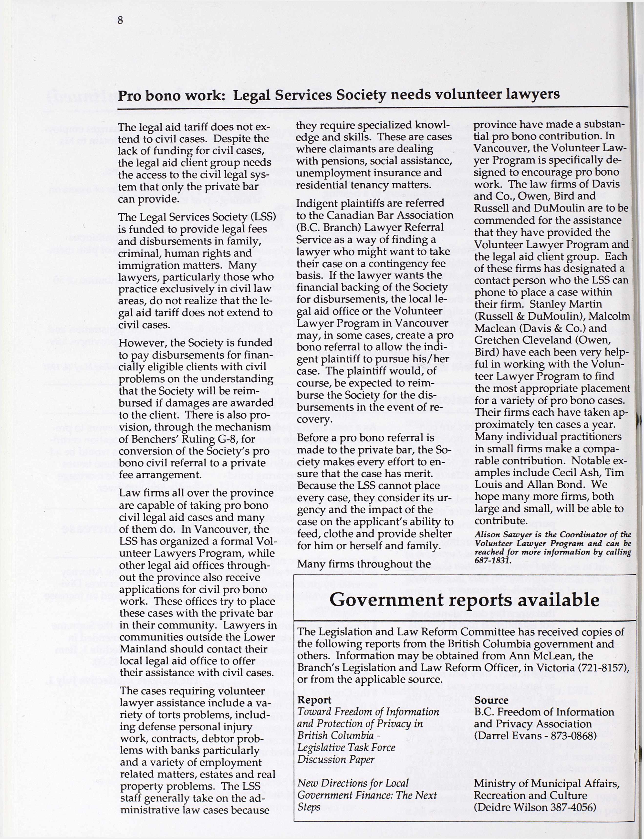 Branch's Legislation and Law Reform Officer, in Victoria (721-8157), |