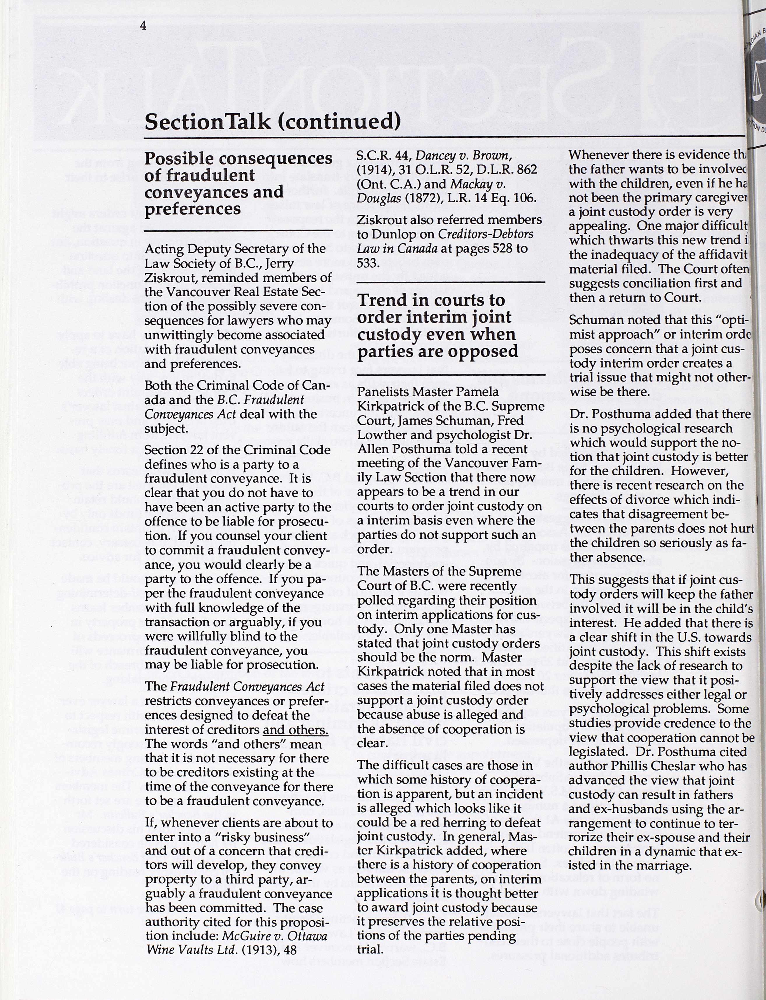 tween the parents does not hurt1 involved it will be in the child's I interest. He added that there is I a clear shift in the U.S. towards |1 psychological problems. Some I studies provide credence to the I view that cooperation cannotbe I rorize their ex-spouse and their I