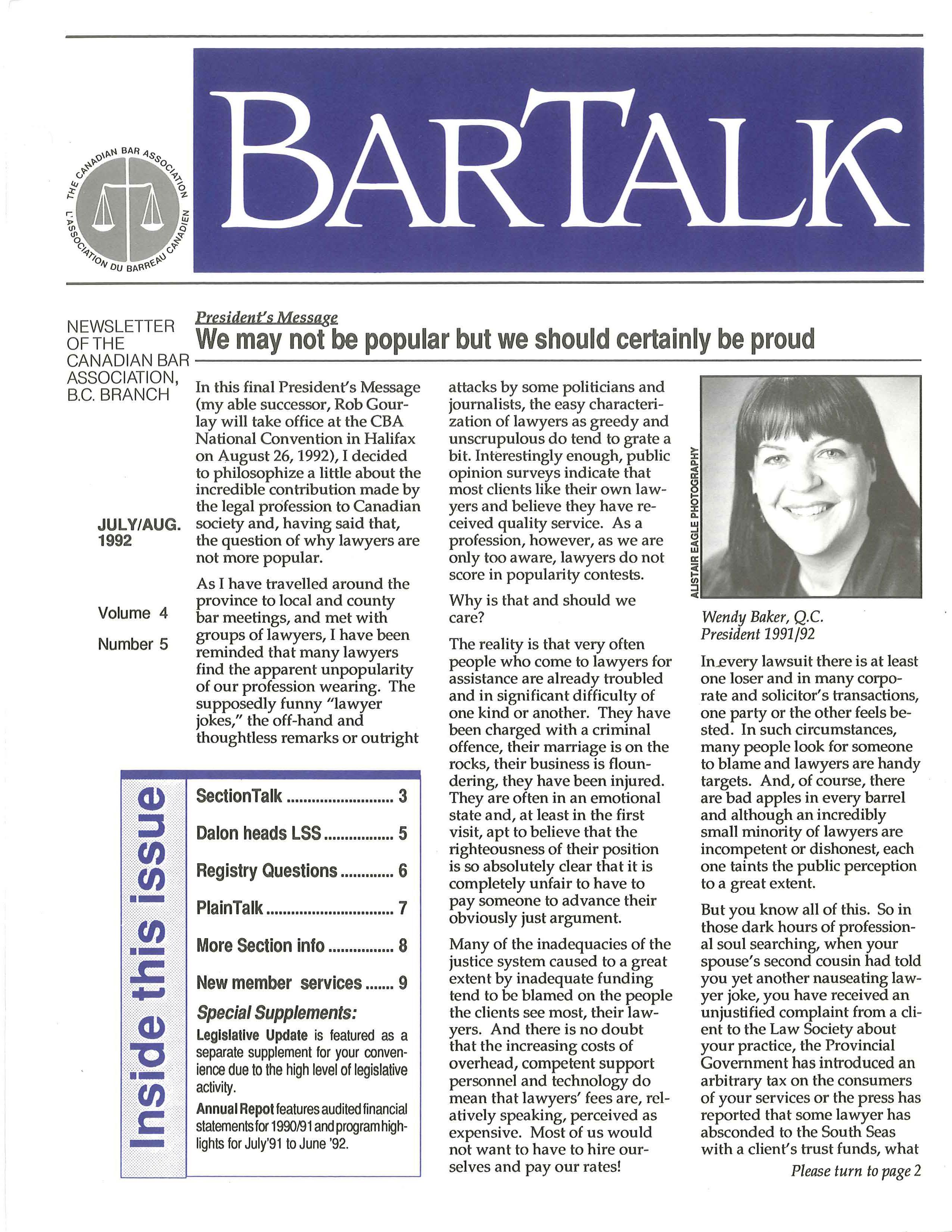 BarTalk is published by the British Columbia Branch, Canadian Bar Association, 504-1148 Hornby Street, Vancouver, B.C. V6Z 2C3