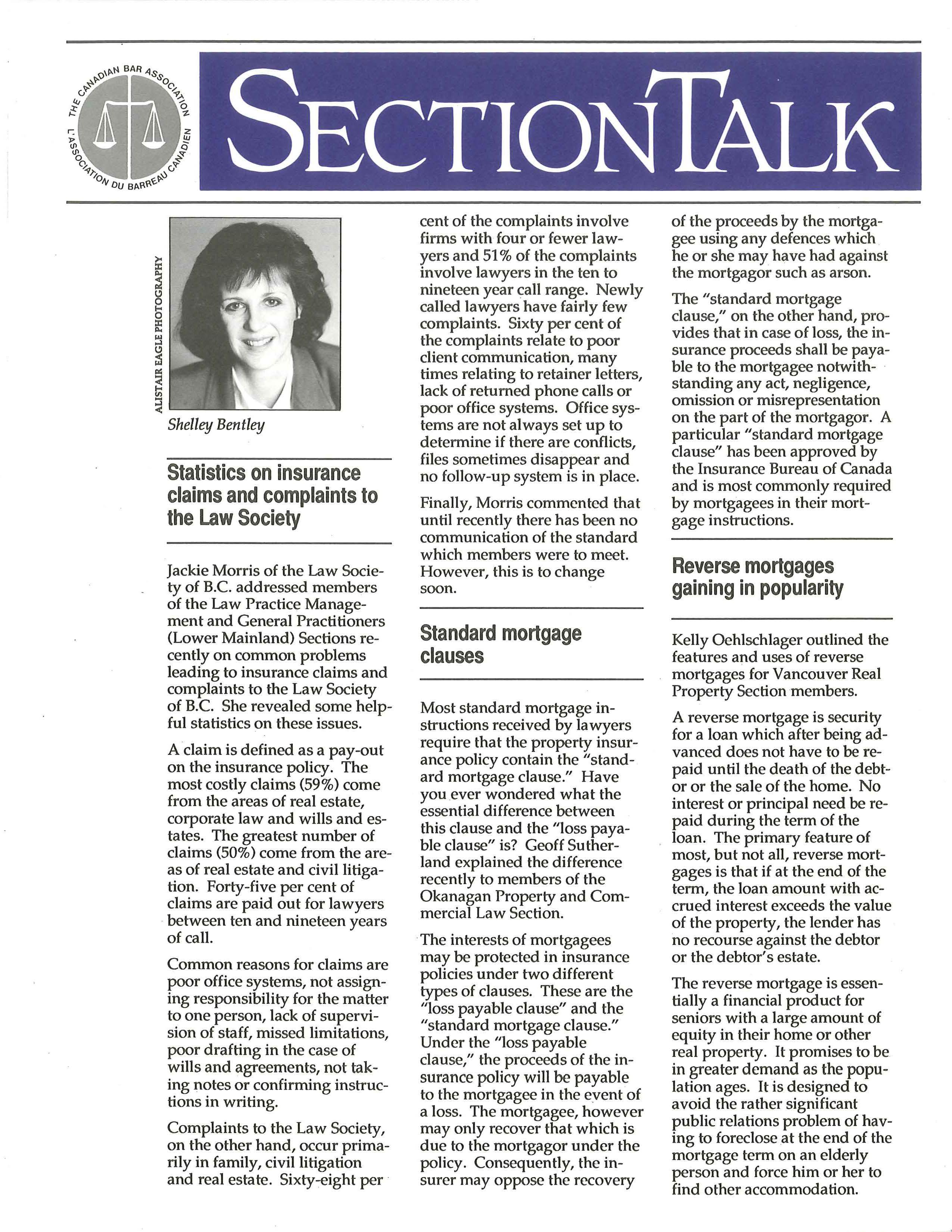Jackie Morris of the Law Society of B.C. addressed members of the Law Practice Management and General Practitioners (Lower Mainland) Sections reon c?mmon problems leadmg to Insurance claims and complaints to the Law Society of B.C.. revealed some helpful statistics on these issues .