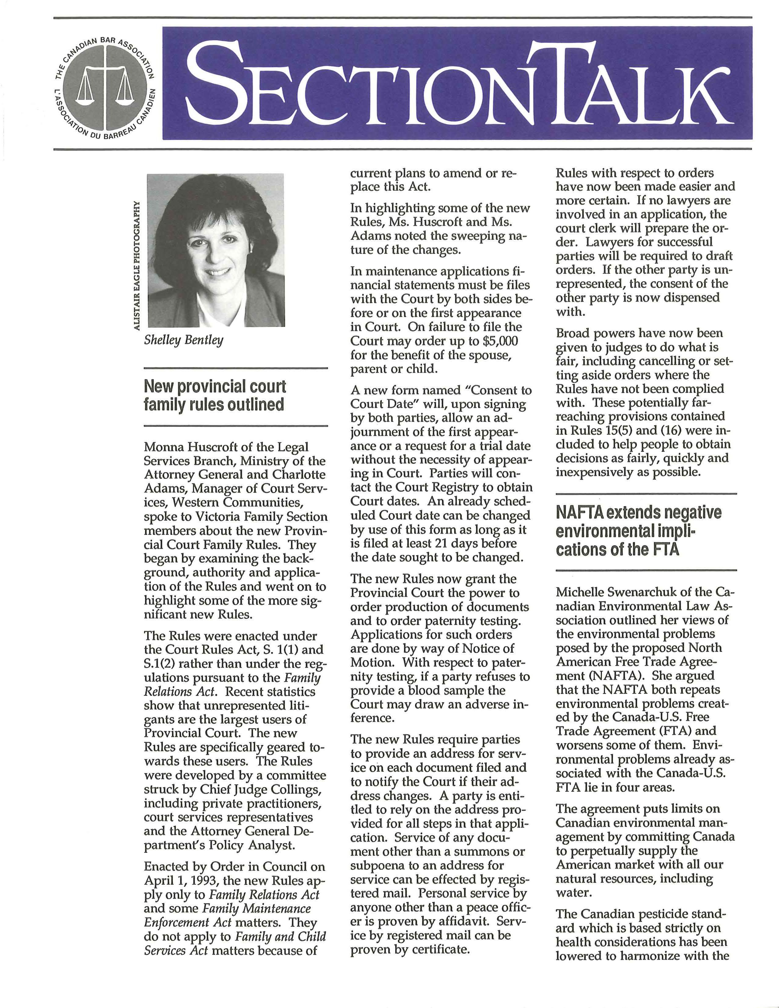 BarTillkis published by the British Columbia Branch of the Canadian Bar Association, 10th Floor- 845 Cambie Street Vancouver, B.C. V6B 51'3 Tel: (604) 687-3404 FAX: 669-9601