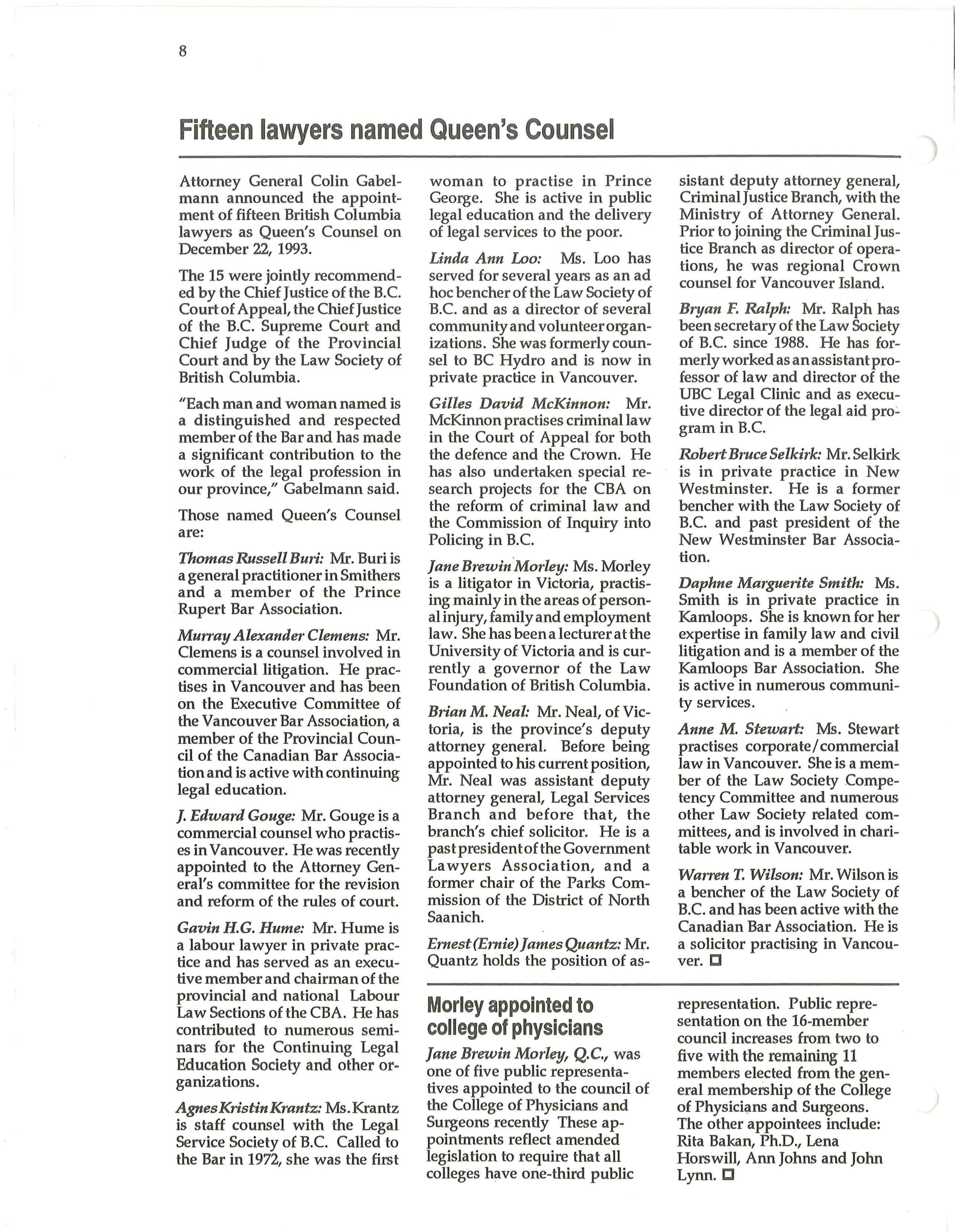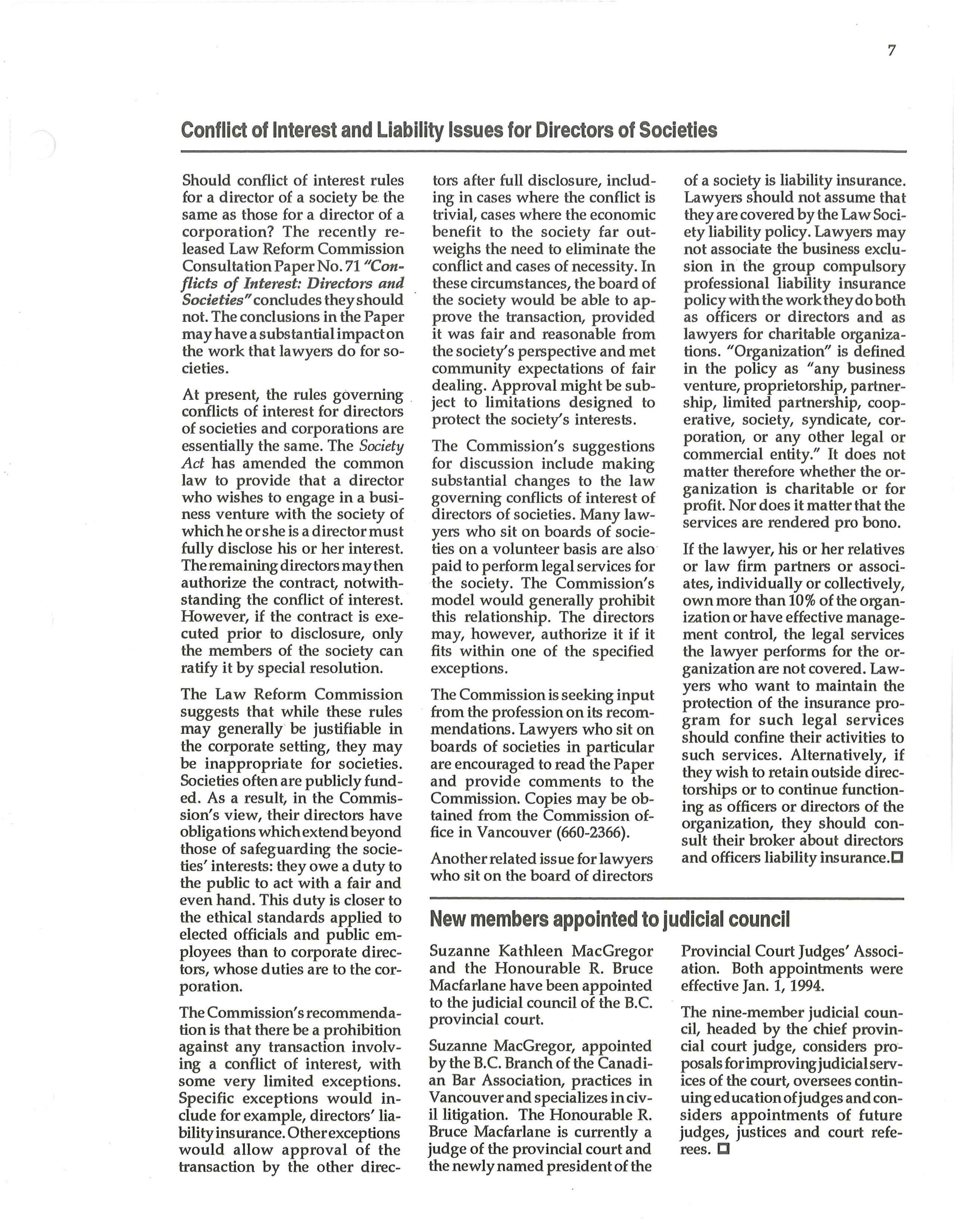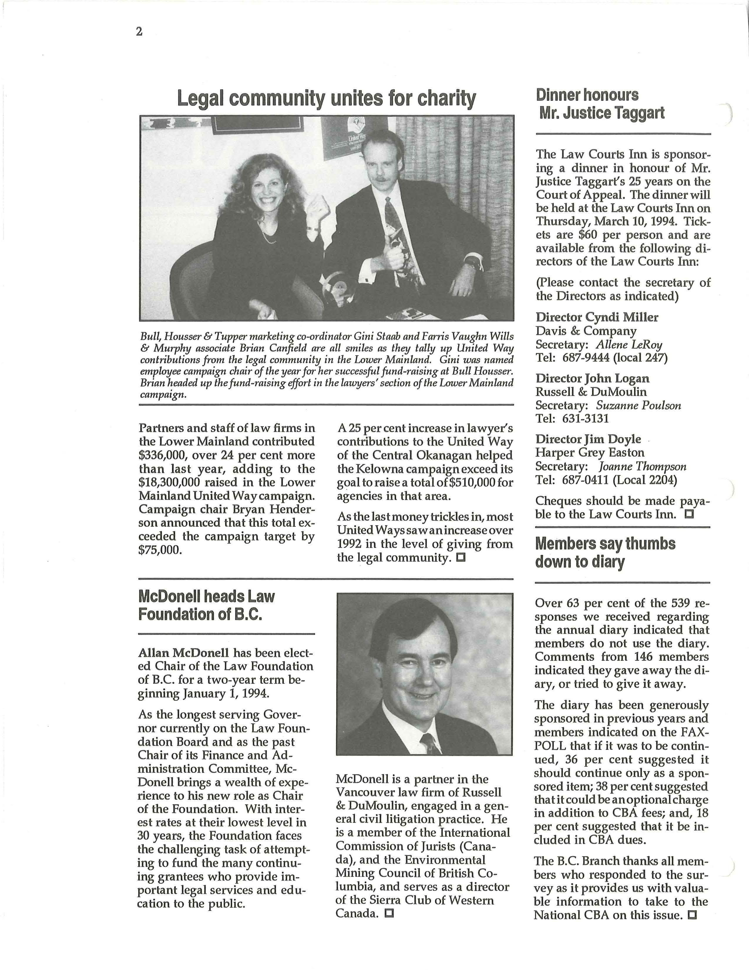 Allan McDonell has been elected Chair of the Law Foundation of B.C. for a two-year term beginning January 1, 1994.